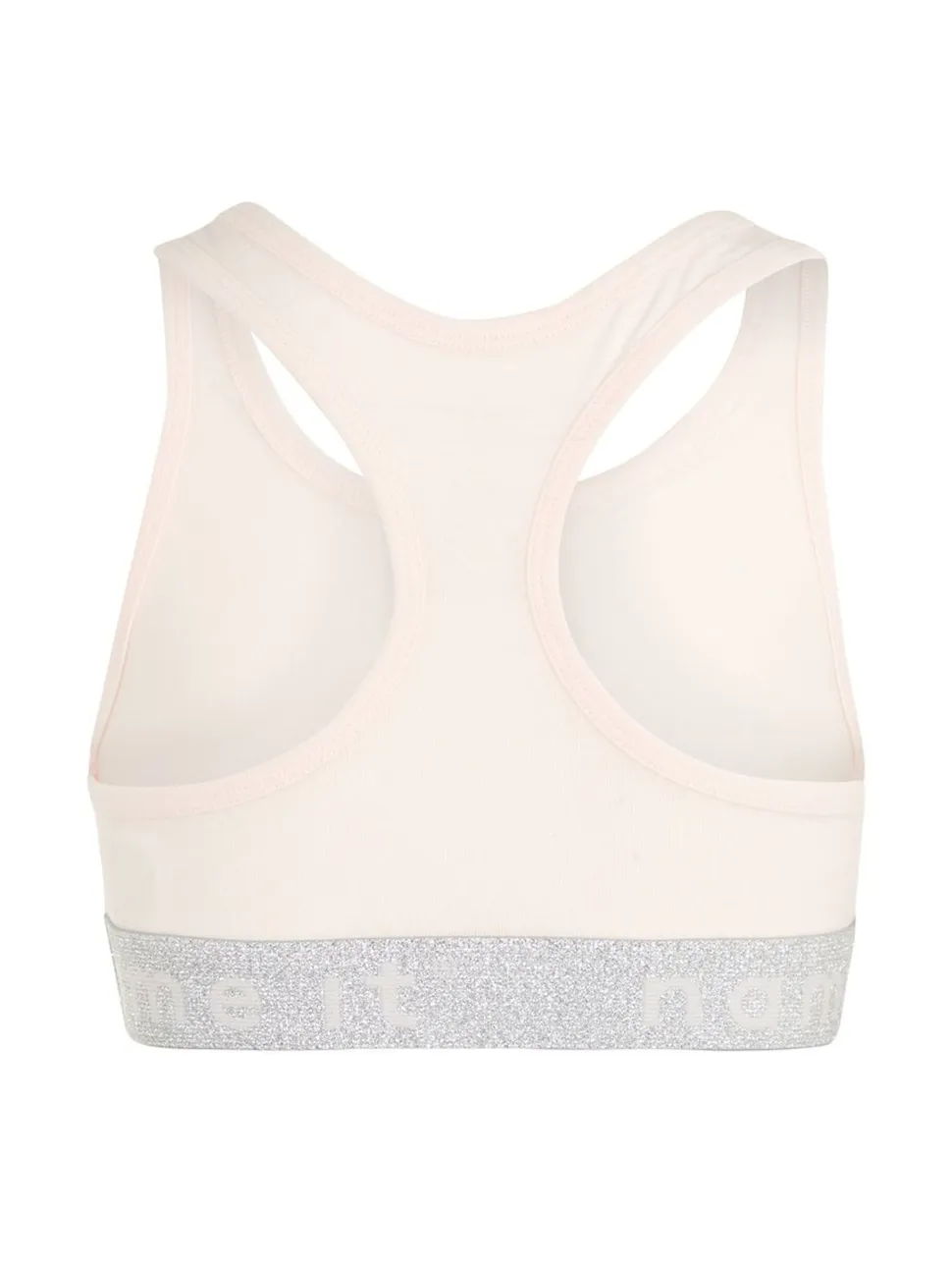 Name Itin lyhyt, hihaton toppi. Joustava kimalteleva kuminauharesori, jossa Name It -logo. Pehmeä ja joustava materiaali. 2kpl / paketti.