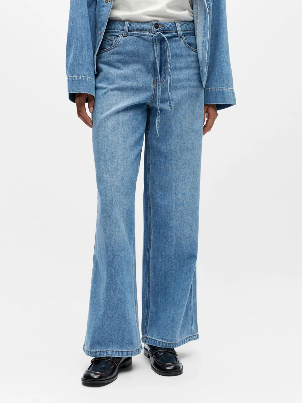 Object Rosie Leveälahkeiset farkut ovat trendikkäät ja mukavat naisten farkut, joissa yhdistyvät klassinen farkkukangas ja moderni leveälahkeinen leikkaus. Farkkujen korkea vyötärö ja leveät lahkeet luovat huolitellun, mutta rennon siluetin, joka on helppo yhdistää niin arkeen kuin vapaa‑ajan asuihin. Valmistettu vaalean sinisestä denimistä, joka tuo raikkaan ja monikäyttöisen ilmeen vaatekaappiin. Näissä farkuissa on perinteiset taskut edessä ja takana, napillinen suljenta sekä klassinen farkkujen vyölenkki‑detaili. Leveälahkeinen malli tarjoaa liikkumavaraa ja mukavuutta koko päivän käyttöön, ja ne sopivat erinomaisesti yhdistettäväksi esimerkiksi t‑paitojen, neuleiden tai bleisereiden kanssa.