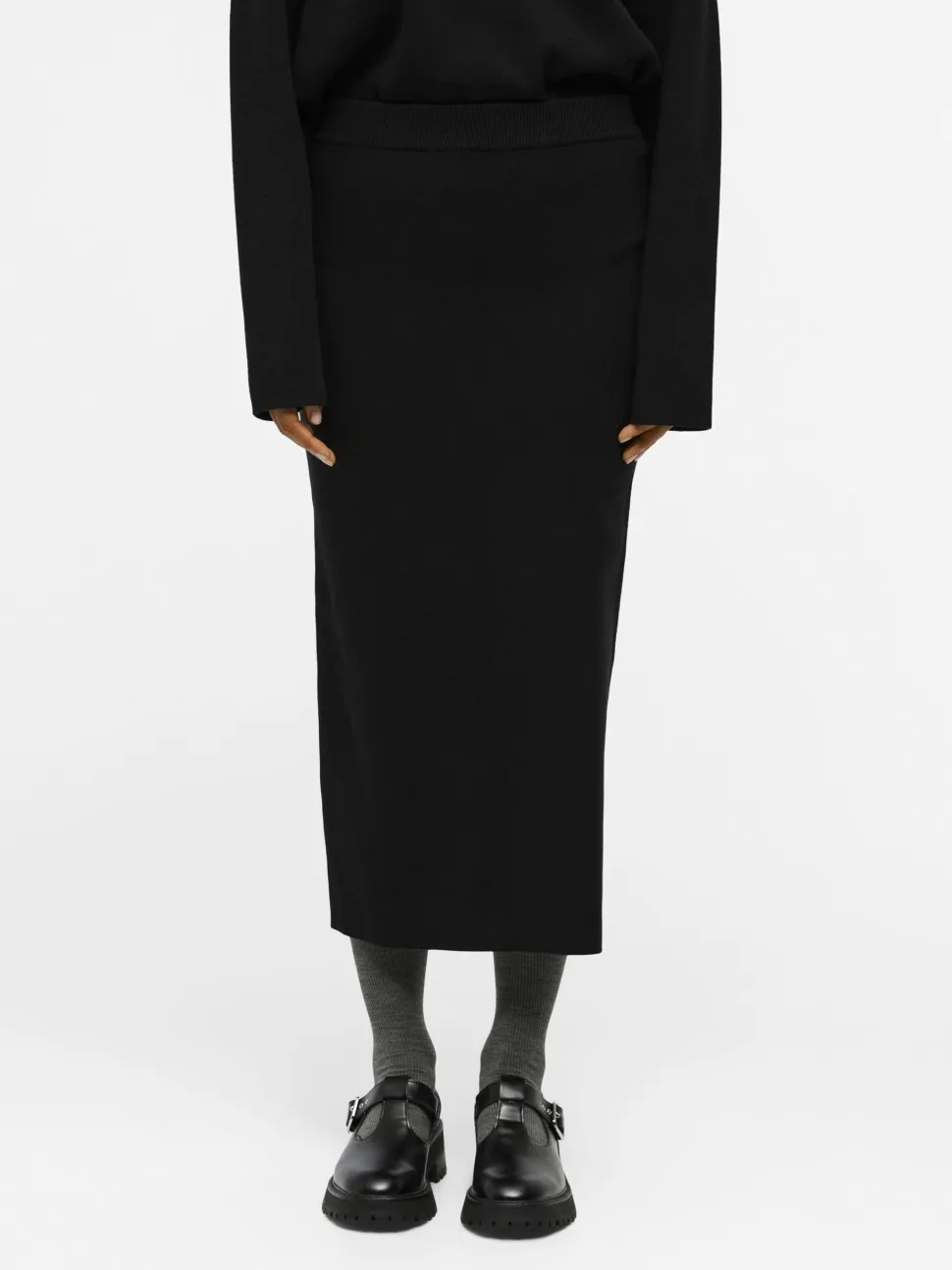 – Neulottu maxihame – Korkea vyötärö – Ribbireuna – Pieni halkio yksityiskohta – Normaali istuvuus – Valmistettu vastuullisemmista kankaista