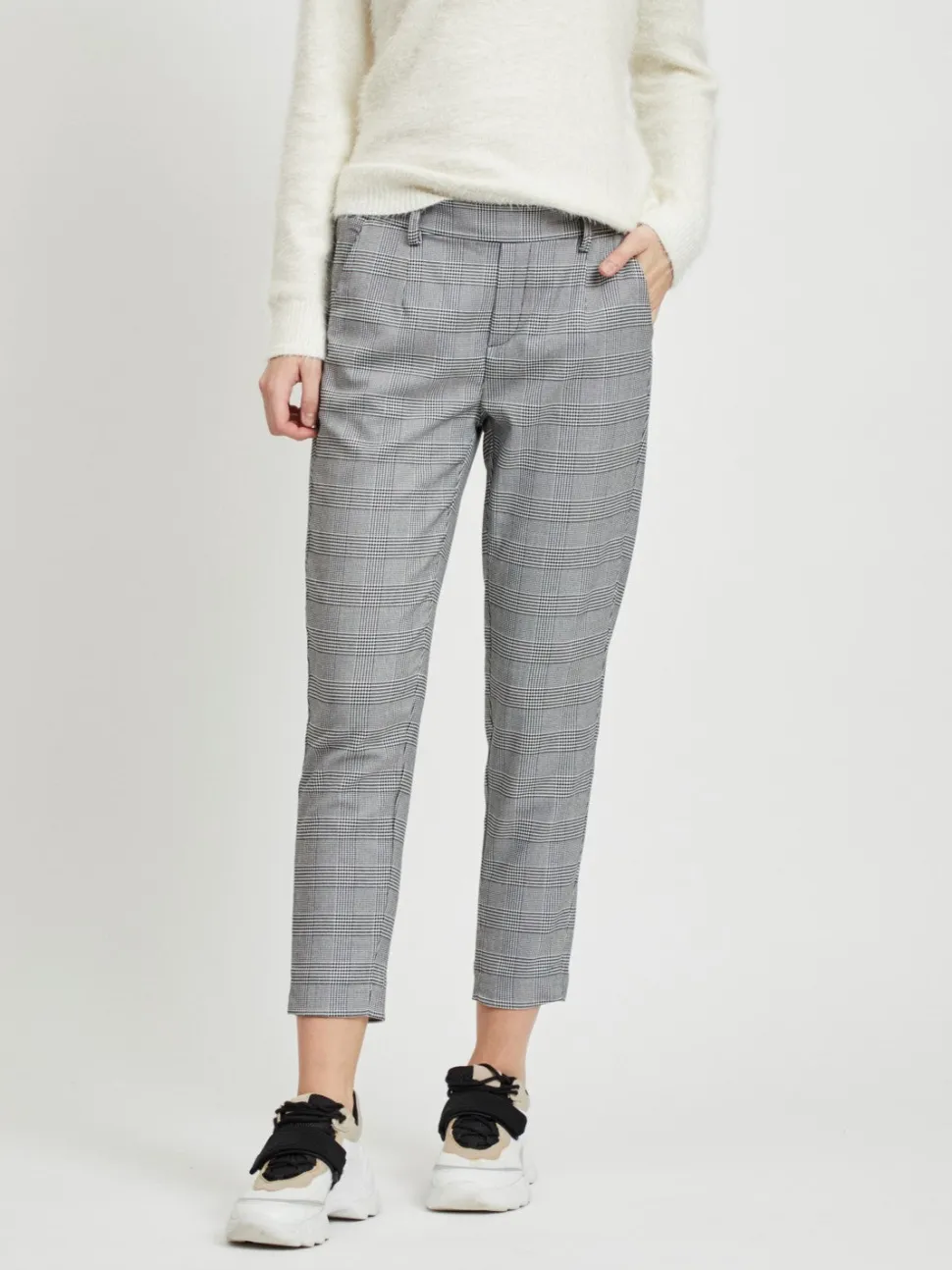 Objectin naisten suorat housut miellyttävää ja joustavaa materiaalia. Kapeahkon malliset housut, joissa resori takana vyötäröllä. Edessä kaksi taskua, takana piilotaskut. Vyölenkit vyötäröllä.
