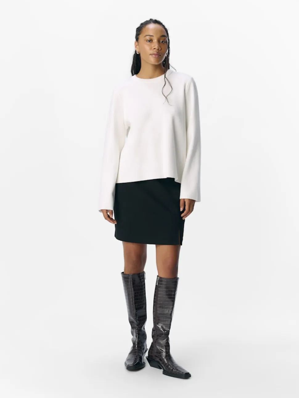 Objectin neule pehmeästä materiaalista. Neuleessa on pyöreä pääntie ja normaali istuvuus.