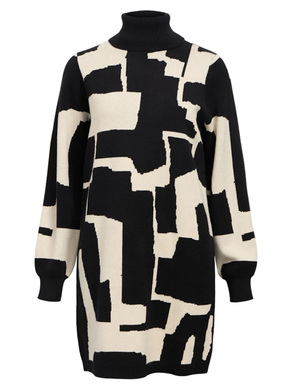 Objectin korkeakauluksinen neulemekko pudotetuilla olkapäillä. Pitkät pallohihat. Loose fit istuvuus.