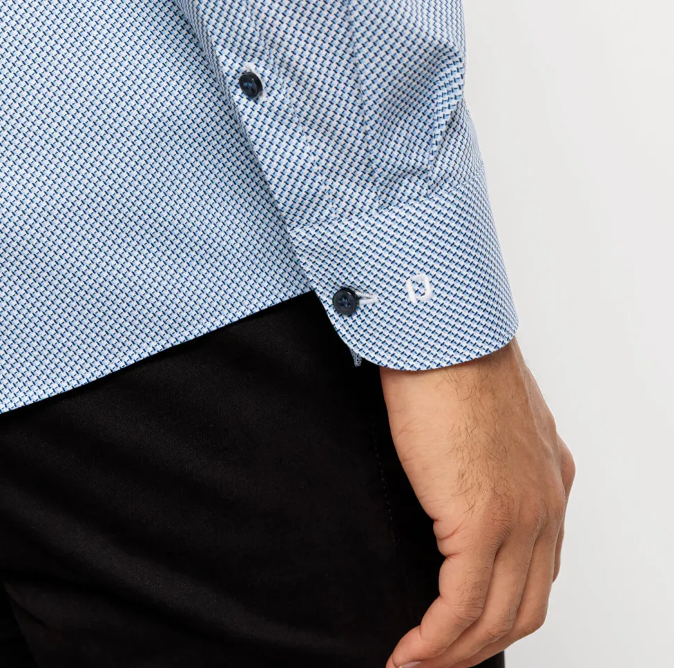 Hieman joustavaa ja helposti silitettävää materiaalia. Kapealinjainen: koossa 39/40 (M) rinnanympärys 110 cm ja vyörärö 98 cm, koossa 41/42 (L) rinta 116 cm ja vyötärö 104 cm, koossa 43/44 (XL) rinta 124 cm ja vyötärö 112 cm.