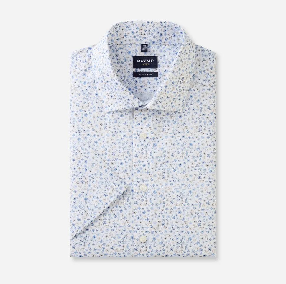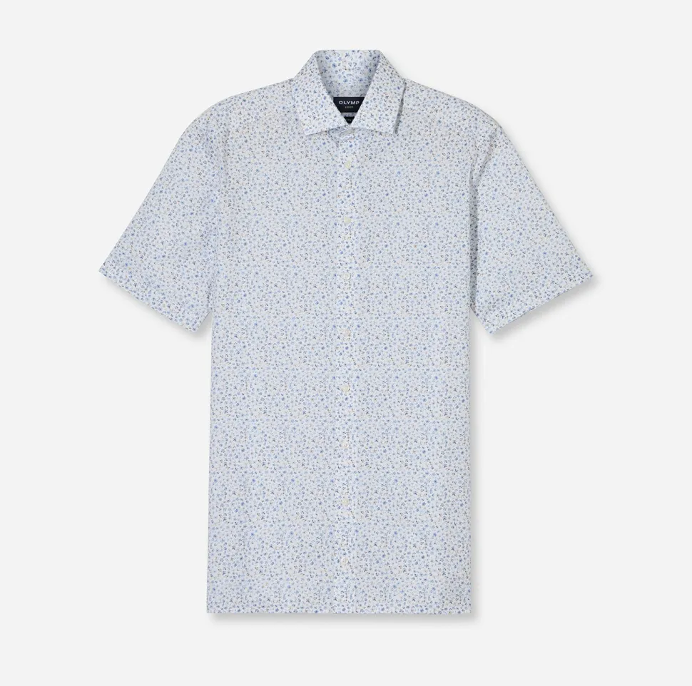Olympin lyhythihainen kauluspaita normaalimitoituksella. Helppohoitoinen ja silittämättä siisti materiaali. Koossa 39/40 (M) rinnanympärys 120 cm, vyötärö 106 cm ja pituus 82 cm. Materiaali: 100% puuvillaa.