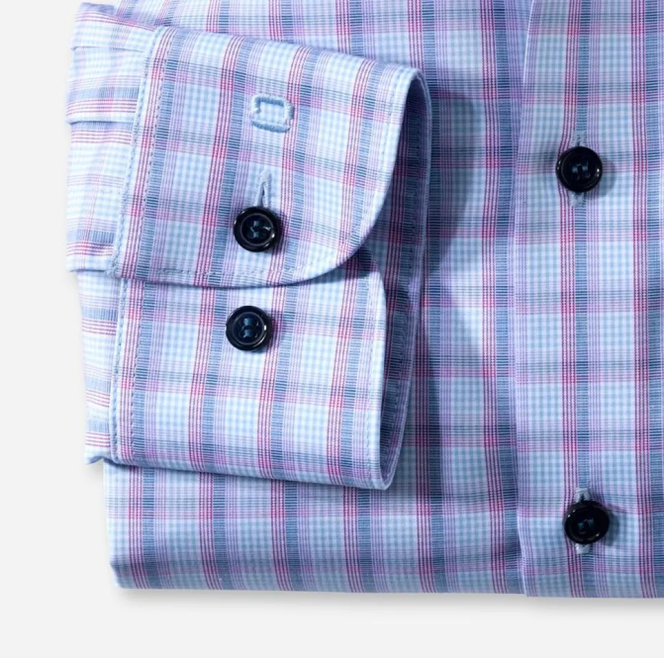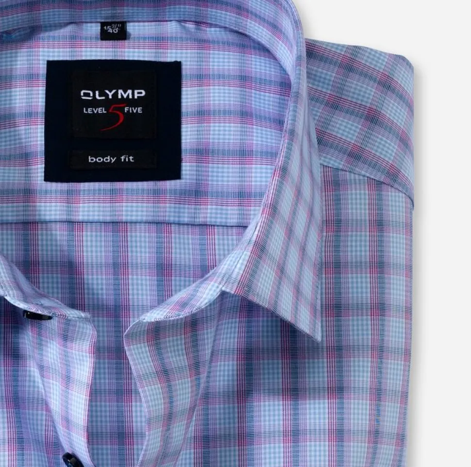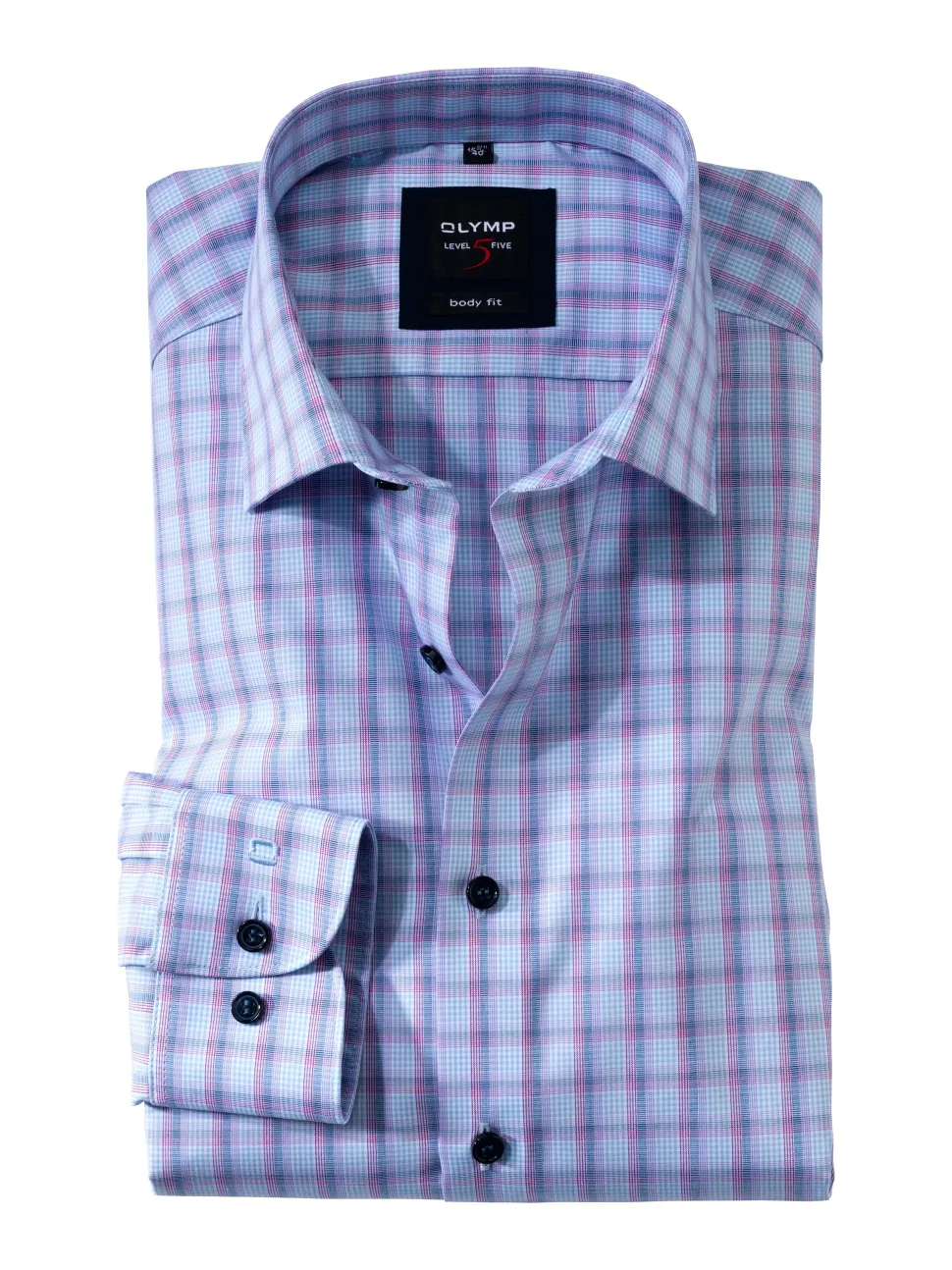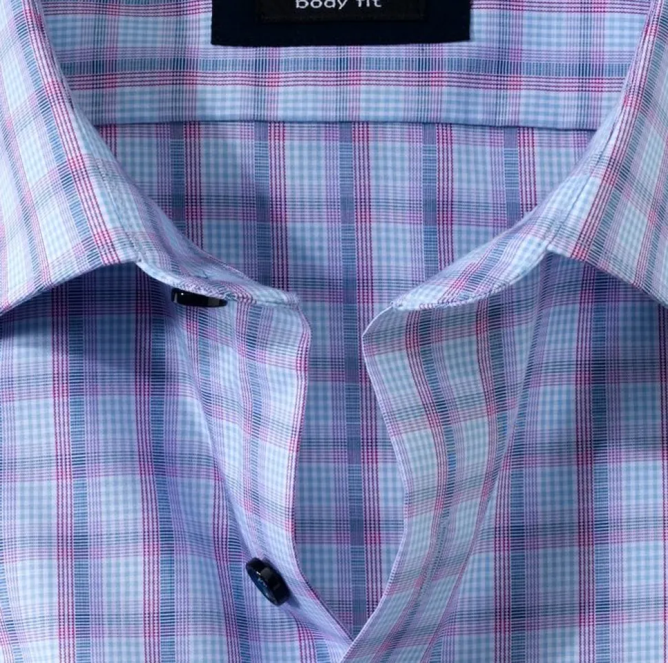 Miesten pitkähihainen kauluspaita, body fit. Hillitty ruutukuosi, Kent -kaulus. Helppohoitoinen, joustava paita jokapäiväiseen käyttöön.