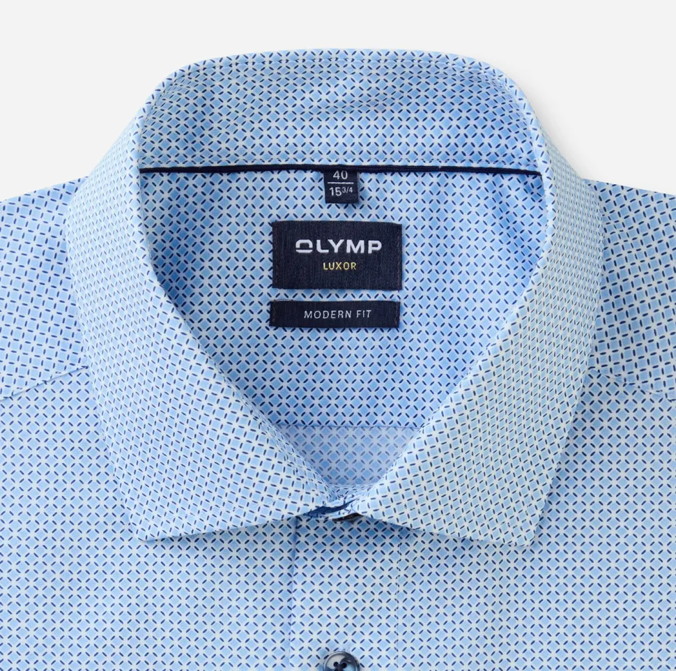 OLYMP Luxor Modern Fit -kauluspaita yhdistää klassisen muotoilun ja modernin istuvuuden, tarjoten täydellisen valinnan niin työpäivään kuin juhlatilaisuuksiin. Sen hienostunut sininen sävy ja hillitty kuviointi tuovat asuusi ripauksen eleganssia.