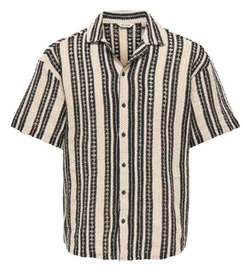 Päivitä kesätyylisi raikkaalla ja rennolla ilmeellä! ONSDANI CROCHET SS SHIRT NOOS on kevyt ja hengittävä lyhythihainen paita, jossa yhdistyvät mukavuus ja trendikkyys. Raidallinen kuviointi ja resort-tyylinen kaulus tuovat paitaan huolettoman mutta huolitellun fiiliksen – täydellinen valinta niin töihin, kouluun kuin vapaa-ajalle.