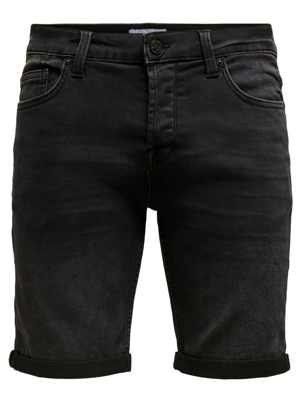 Miesten joustavat farkkushortsit. 5- taskumalli, vyölenkit ja edessä vetoketju. Lahkeen pituus sisäsauma 28 cm koko M.