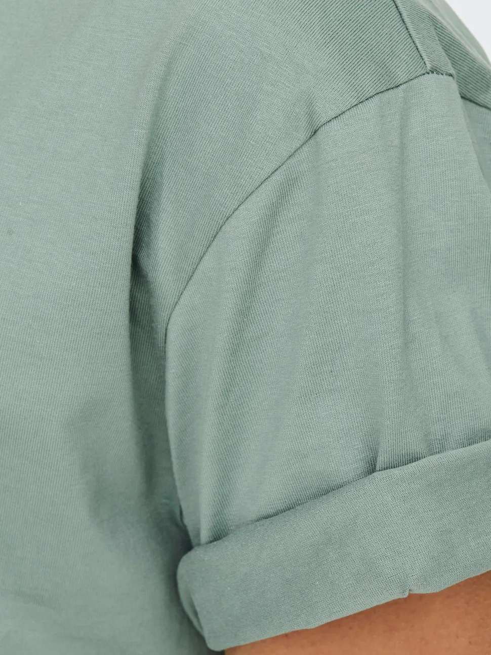T-paita on miellyttävää puuvillaa ja mitoituksena hiukan leveähkö.