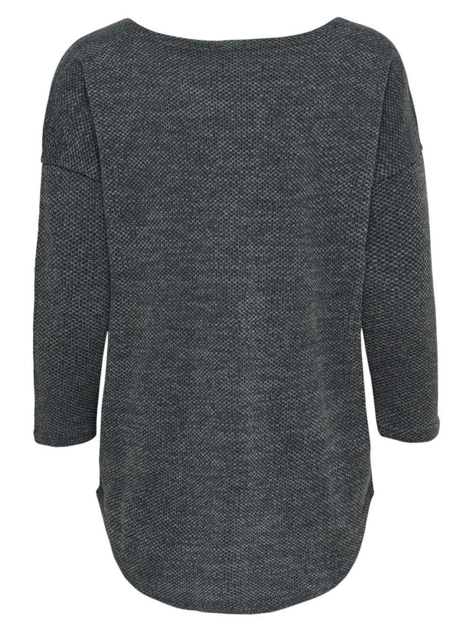 Onlyn rento, laatikkomallinen pusero ohutta neulosta, Avara pääntie, 3/4-hihat. Helma takaa pyöristetty ja pidempi. Koossa S pituus edessä n.63 cm, takana n.73 cm. Valmistusmaa Kiina.