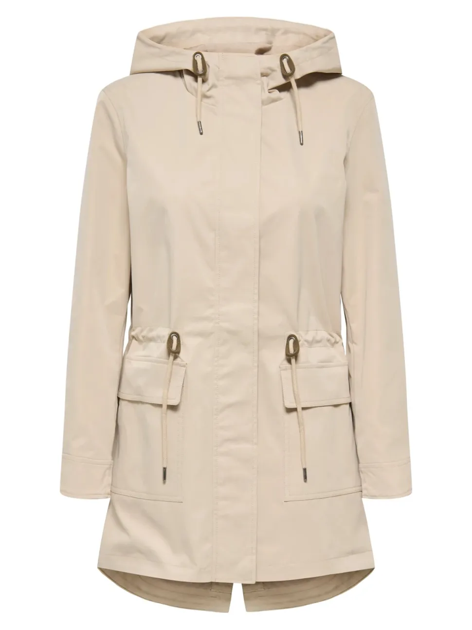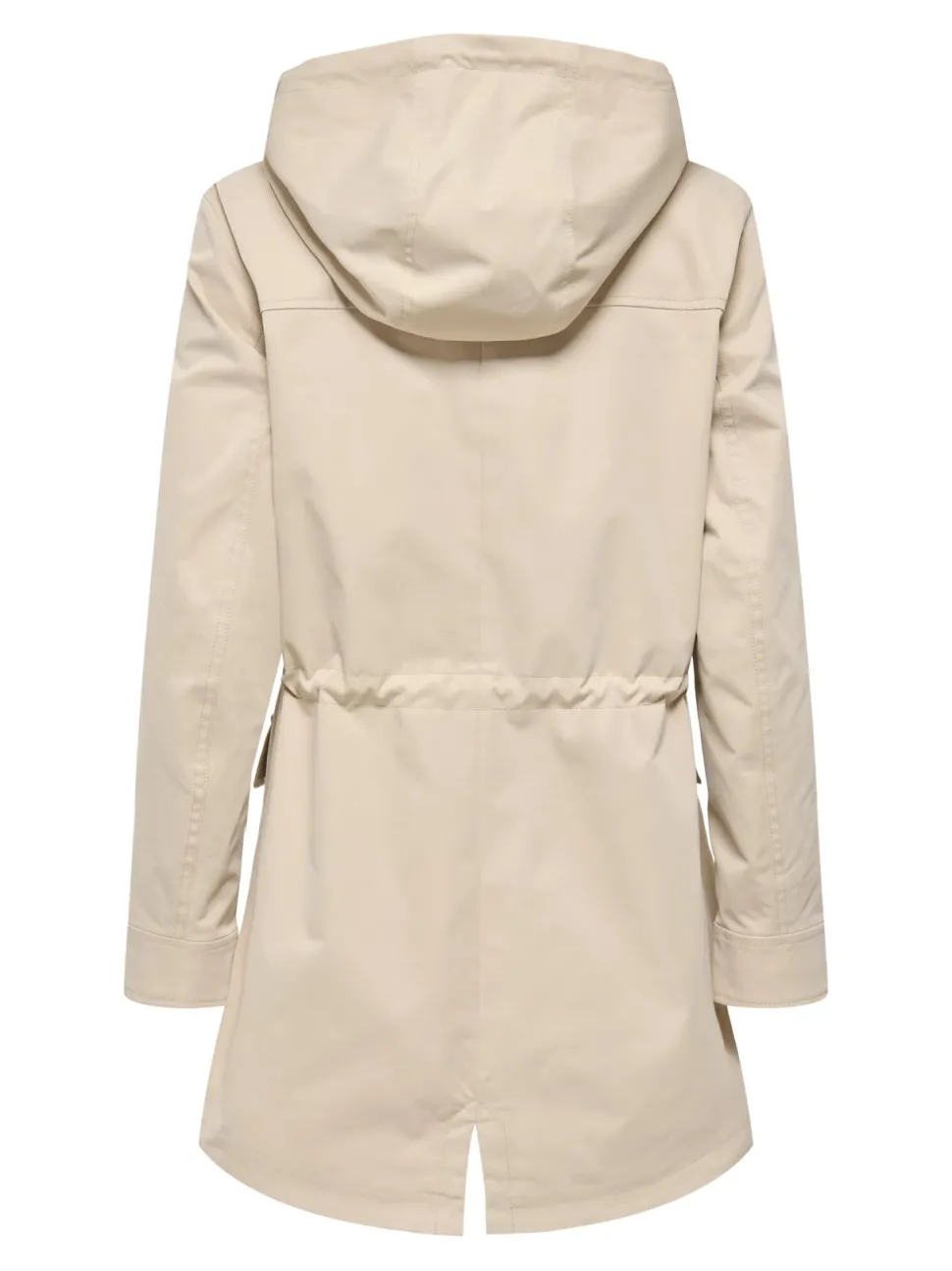 Only Louise on tyylikäs ja käytännöllinen välikausitakki, joka yhdistää modernin muotoilun ja arjen toiminnallisuuden. Takissa on säädettävä huppu kiristysnyöreillä, joka suojaa tuulelta ja viimalta, ja edessä käytännölliset etutaskut pienten tavaroiden säilytykseen. Pitkä malli tarjoaa lisää peittoa viileämpinä päivinä, ja vetoketjukiinnitys tekee takista helpon pukea päälle tai riisua. Tämä takki on erinomainen valinta niin kaupungin kaduilla kuin luonnon keskellä – mukava, monikäyttöinen ja ajaton perusvaate jokaiseen kauteen.