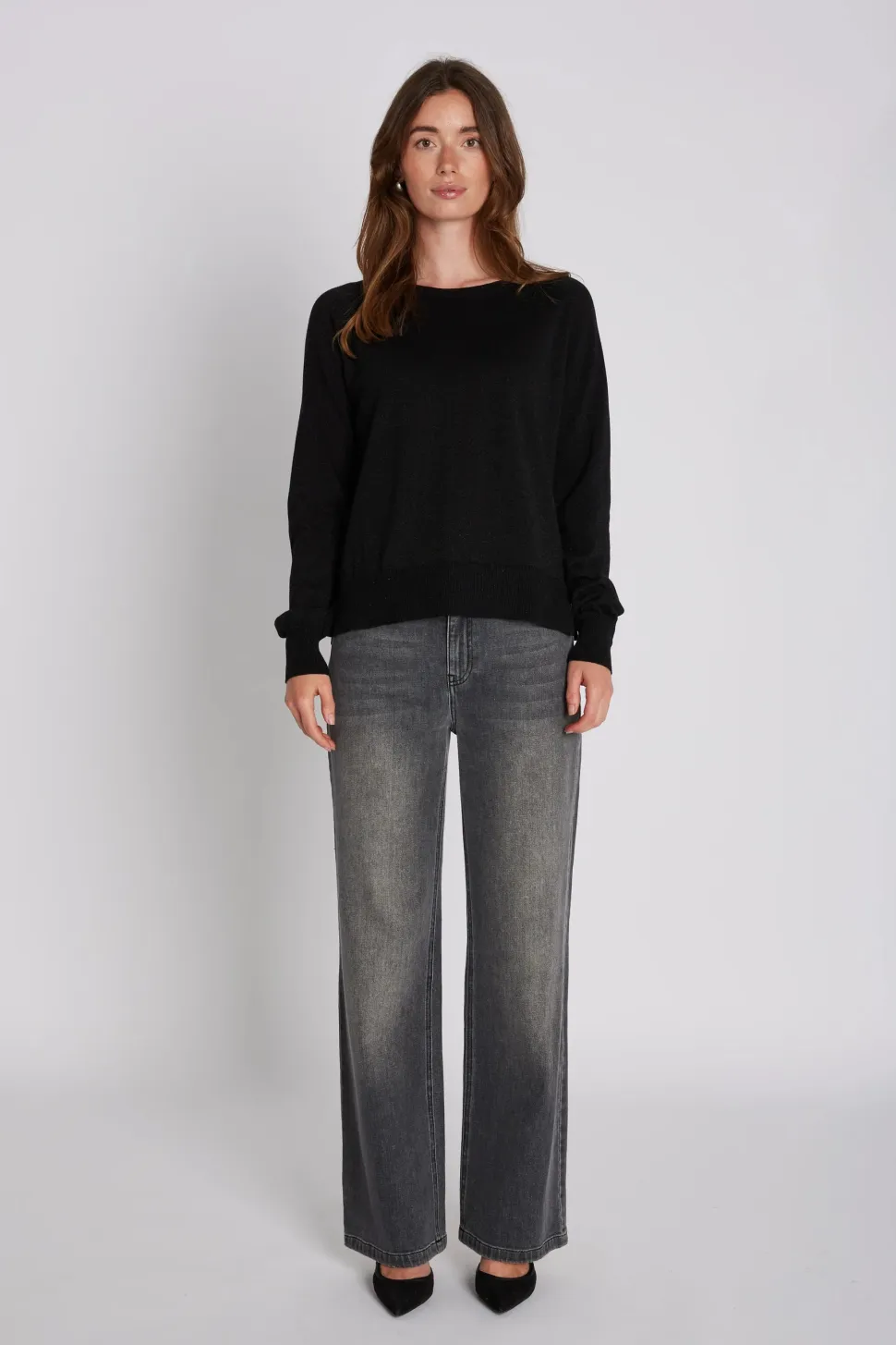 Lia-farkuissa on väljä, suora istuvuus harmaata pestyä denimiä, korkea vyötärö ja klassinen viisitaskuinen malli. Mukava ja ajaton valinta arkikäyttöön.