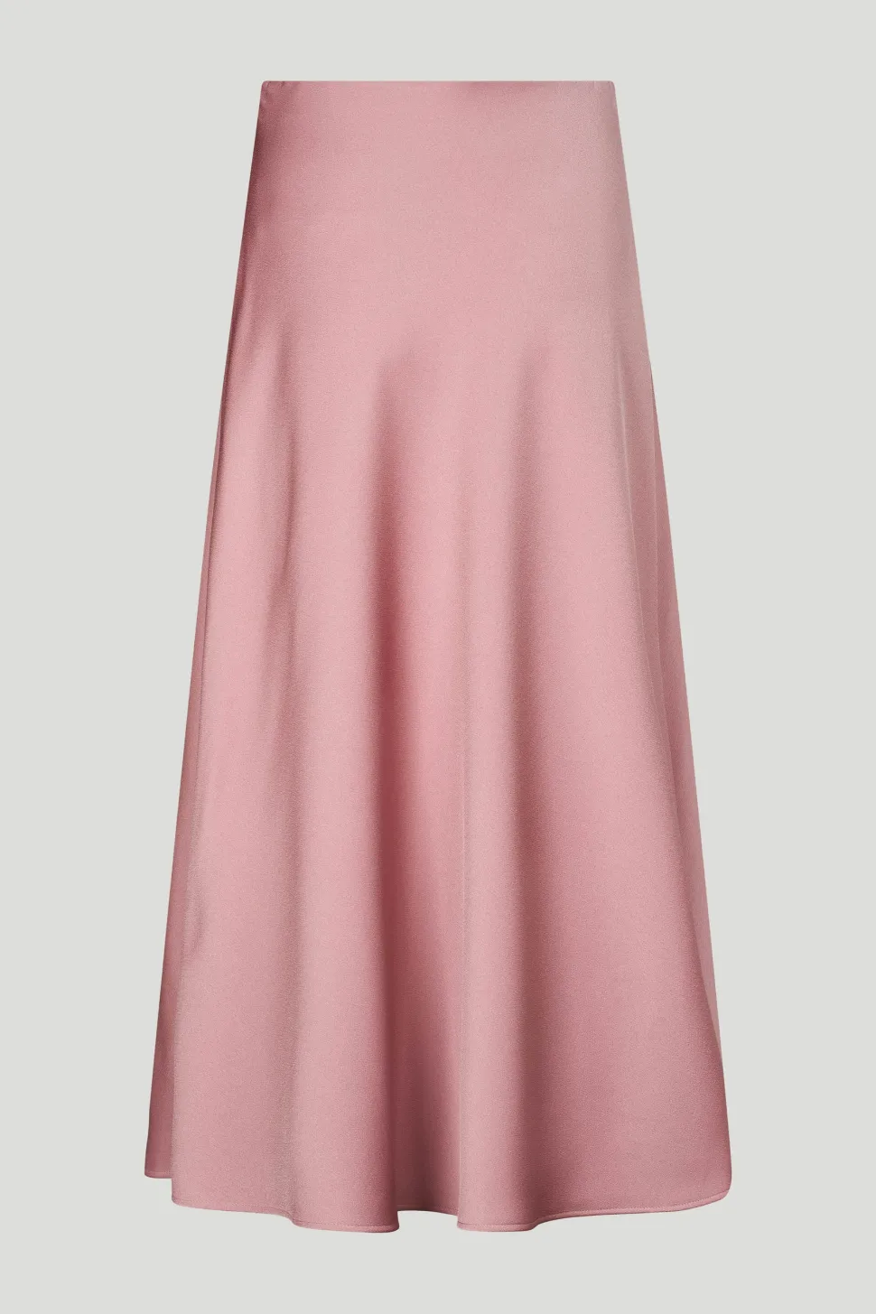 Ello-hame on midi-pituinen A-linjainen malli, jossa on sileä pinta ja yksinkertainen vyötärö. Elegantti ja ajaton siluetti moneen tilaisuuteen.