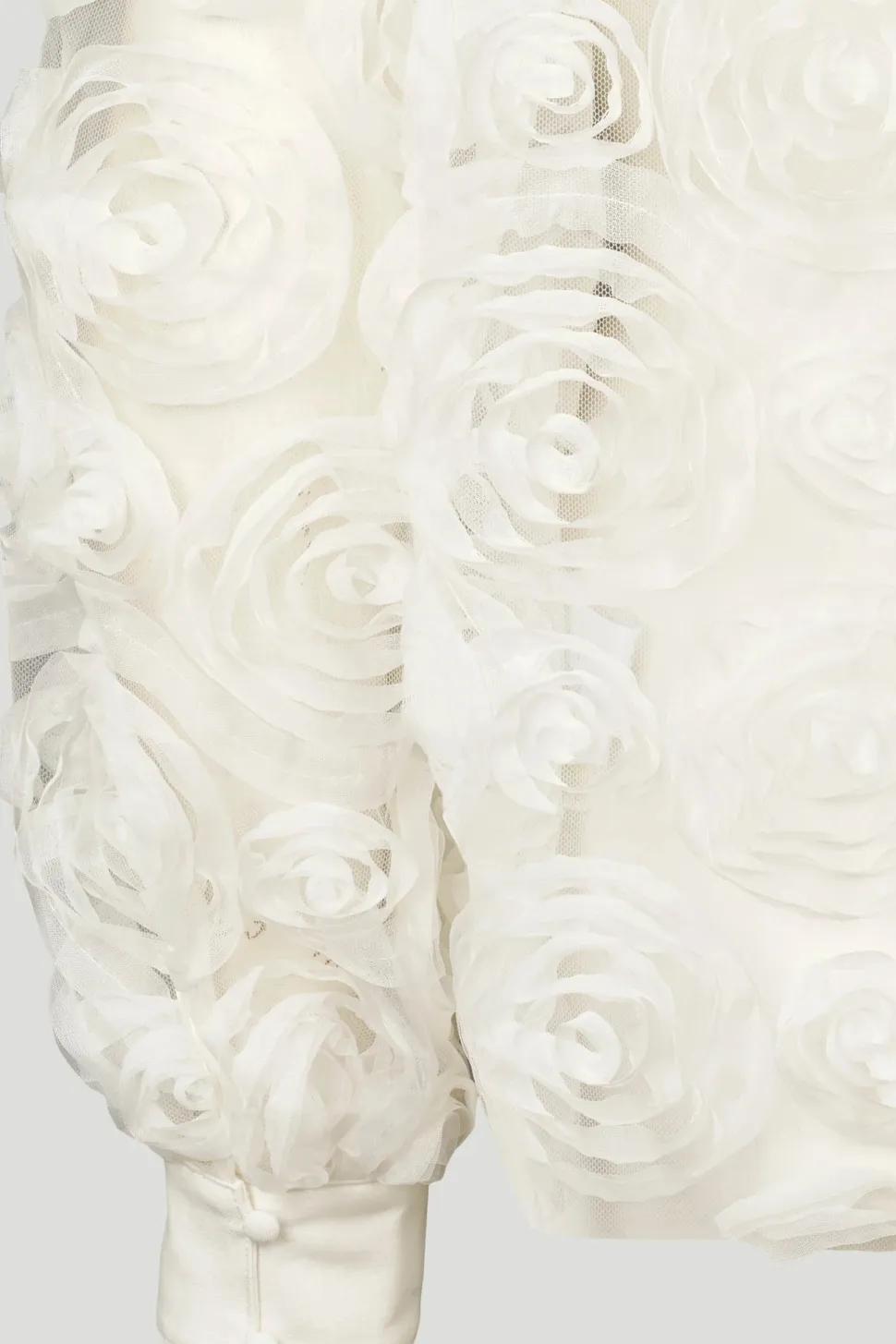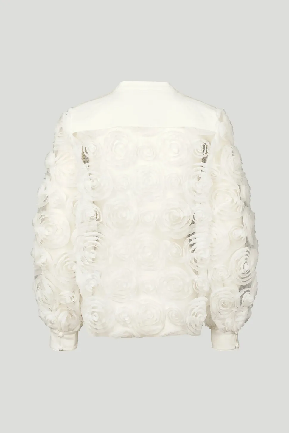 Kauniissa puserossa on V-aukko ja pitkät hihat. Ommellut ruusukoristeet luovat kolmiulotteisen ja romanttisen vaikutelman.