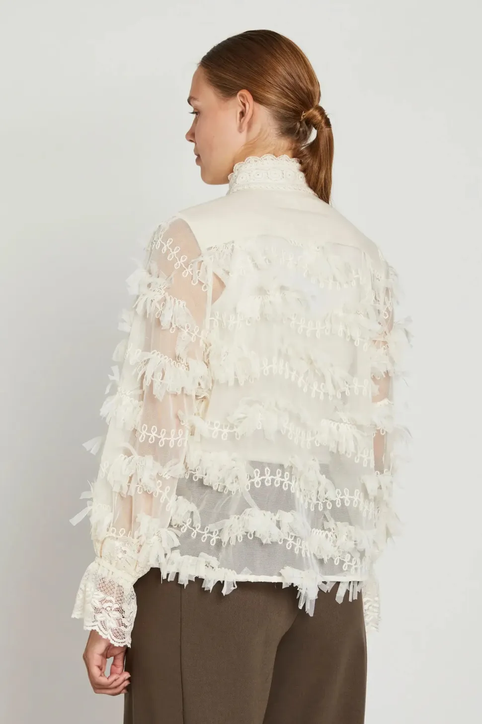 Royal-pusero on elegantti valinta, jossa on yksityiskohtainen pitsikuviointi, joka luo ylellisen ilmeen. Täydellinen juhlatilaisuuksiin tai tuomaan ripauksen luksusta arkeen.