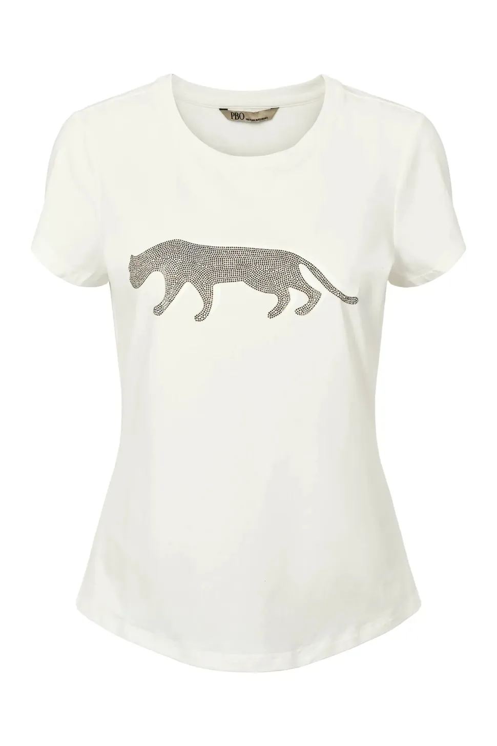 Tyylikäs t-paita, joka on valmistettu puuvillasekoitteesta. Klassinen pyöreä kaula-aukko. T-paidan yksityiskohtainen jaguaari-printti tuo asuun asennetta.