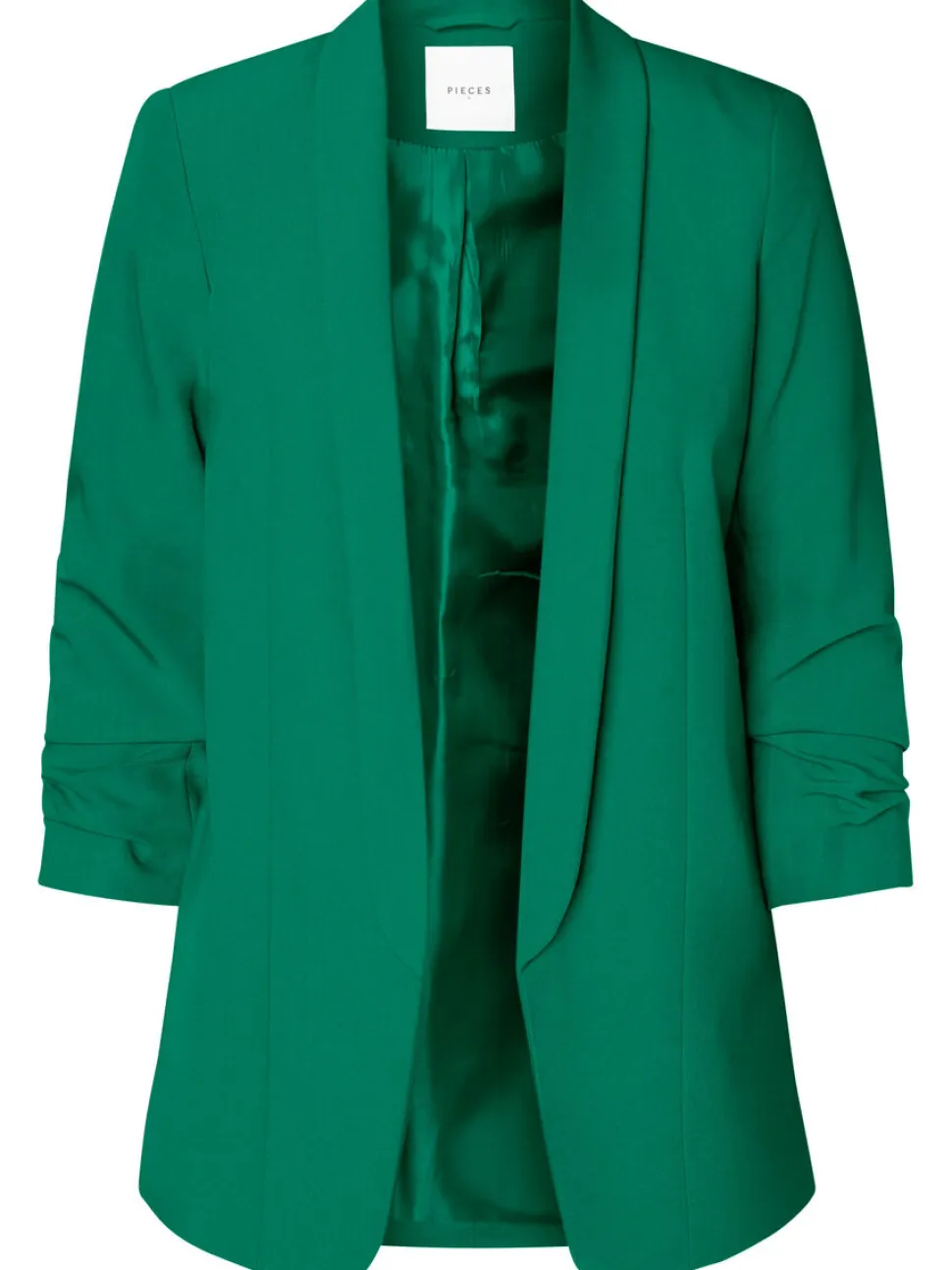 Pieces rento, pitkä bleiseri – 3/4 hihat – Normaali mitoitus – Valkaisu kielletty – Rumpukuivaus kielletty – Silitys keskilämpötilalla