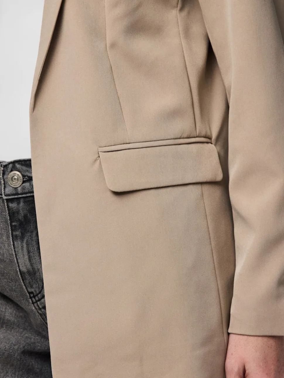 – Lovitetut käänteet – Suorat hartiat – Pitkät hihat – Yksirivinen – Läpälliset sivutaskut – Vuorattu