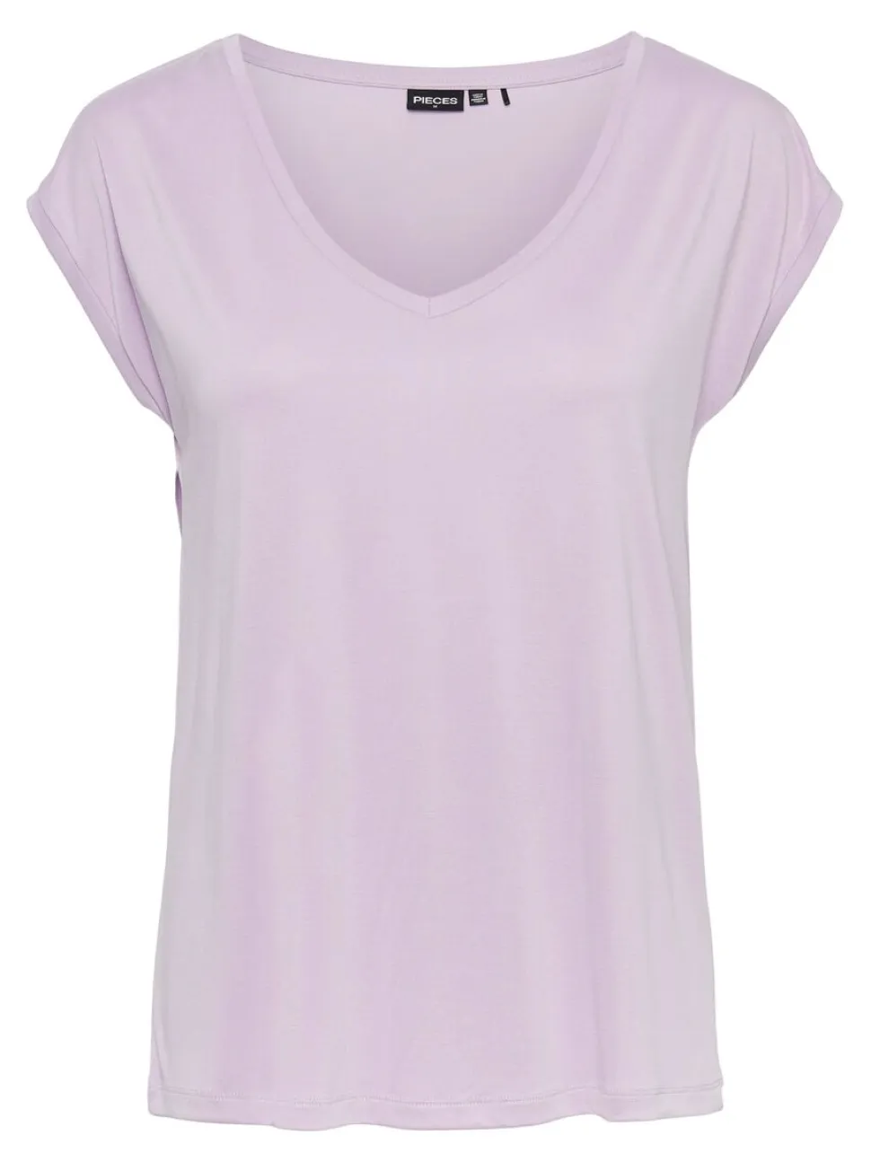 Pieces T-paidassa on joustava ja miellyttävä laatu. Pääntienä kaunis V. Suora istuvuus..