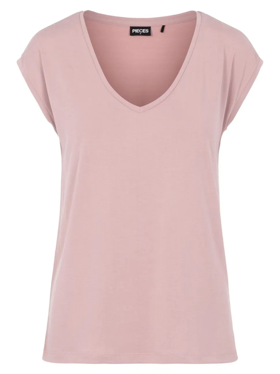 Pieces T-paidassa on joustava ja miellyttävä laatu. Pääntienä kaunis V. Suora istuvuus.