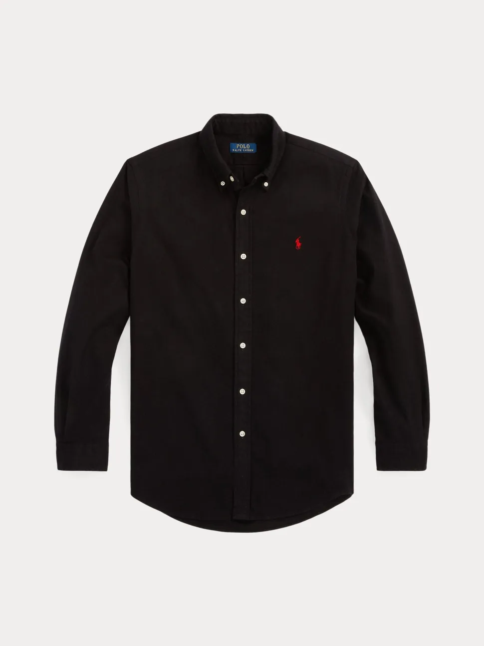 Tämä Polo Ralph Lauren Long Sleeve Sport kauluspaita yhdistää klassisen kauluspaidan estetiikan ja sporttisen mukavuuden. Paidan kangas tarjoaa hengittävyyttä ja pehmeän tuntuman, kun taas nappilista edessä ja pitkät hihat lisäävät muodollisuutta. Brodeerattu Polo-poni rinnassa tuo brändin tyylikkään tunnistettavuuden. Musta värisävy tekee paidasta helpon yhdistää sekä farkkujen että siistimpien housujen kanssa. Sopii loistavasti rentoon mutta huoliteltuun arki- tai vapaa-ajan tyyliin.