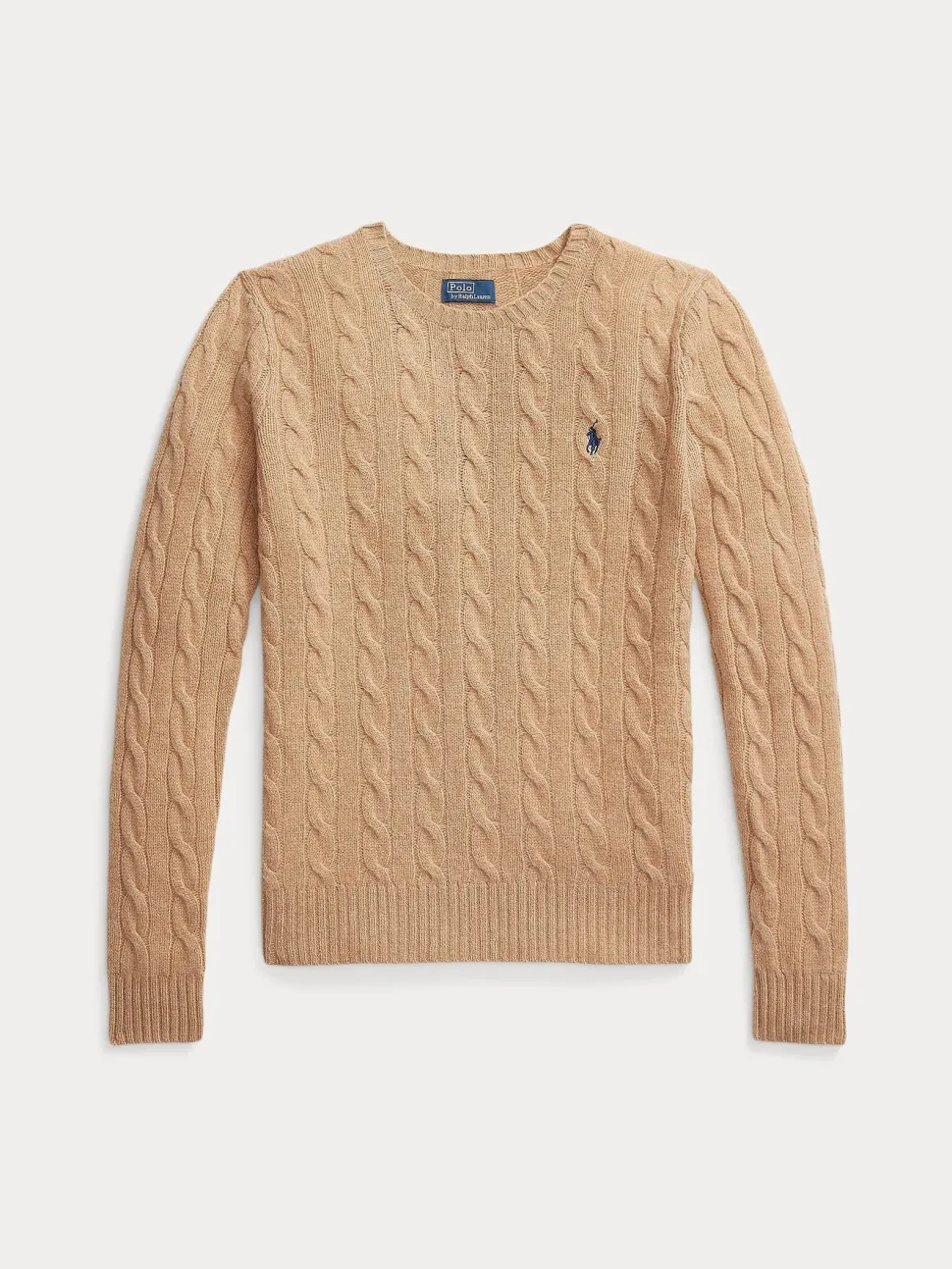 Tämä vartalonmyötäinen, pyöreäkauluksinen neulepusero on ehdoton Poolo-valinnaisvaruste. Neuleessa yhdistyvät pehmeä italialainen villa ja kashmir sekä tunnusomainen palmikkoneule.