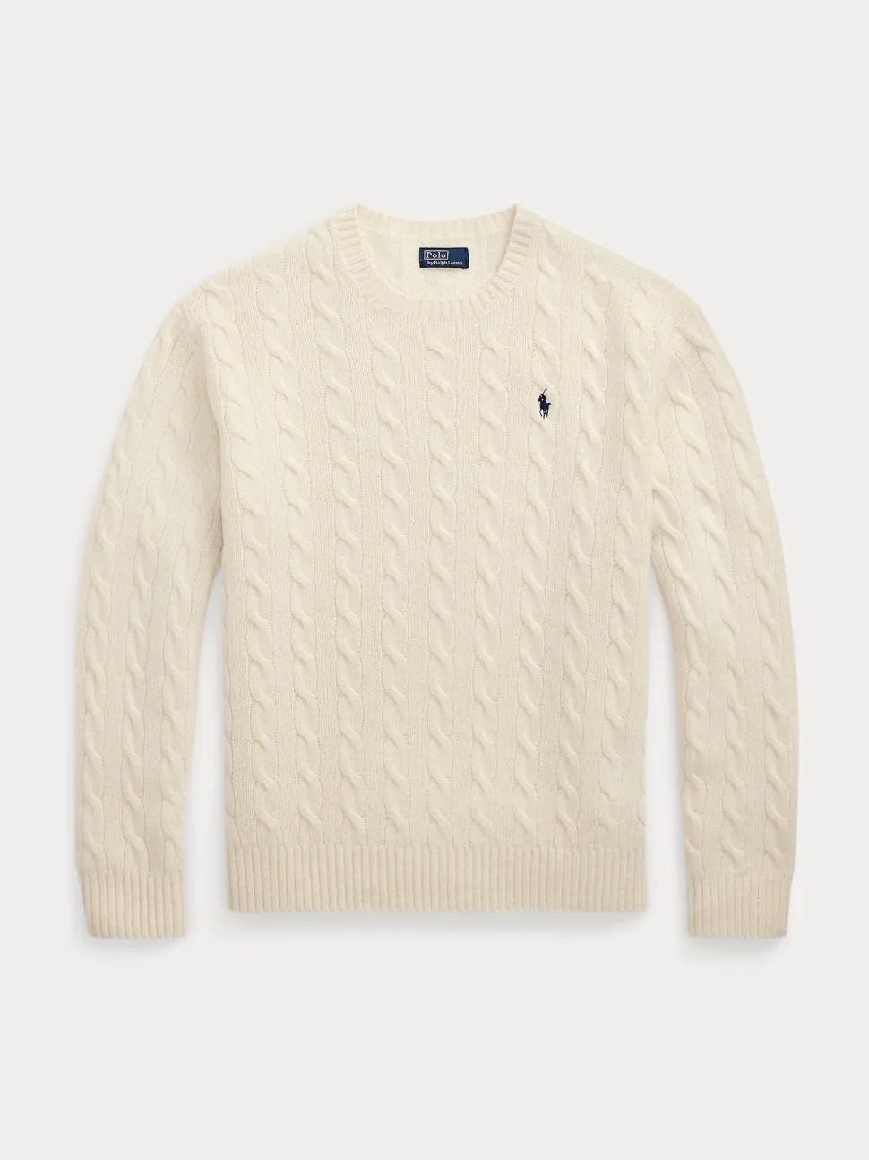 Tämä pyöreäkauluksinen neulepusero on neulottu italialaisesta villasta ja kashmirlangoista, jotka on kehrätty ilmavan ilmeen ja pehmeän laskeutumisen aikaansaamiseksi. Klassinen palmikkokuvio antaa rennon siluetin teksturoidulle ilmeelle.