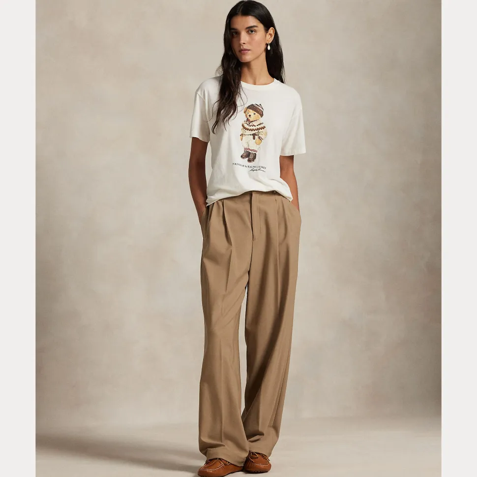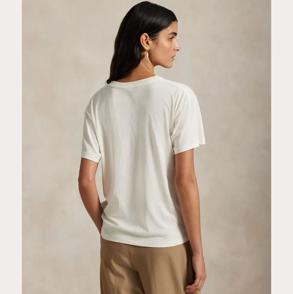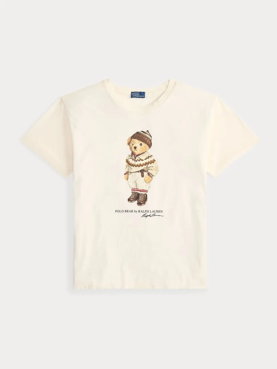 Tämä puuvillajerseystä valmistettu pyöreäkauluksinen t-paita on painettu kuminauhan avulla, ja siinä on tavaramerkkilogomme ja kylmän sään Ralph Lauren -lookiin puettu poolokarhu.