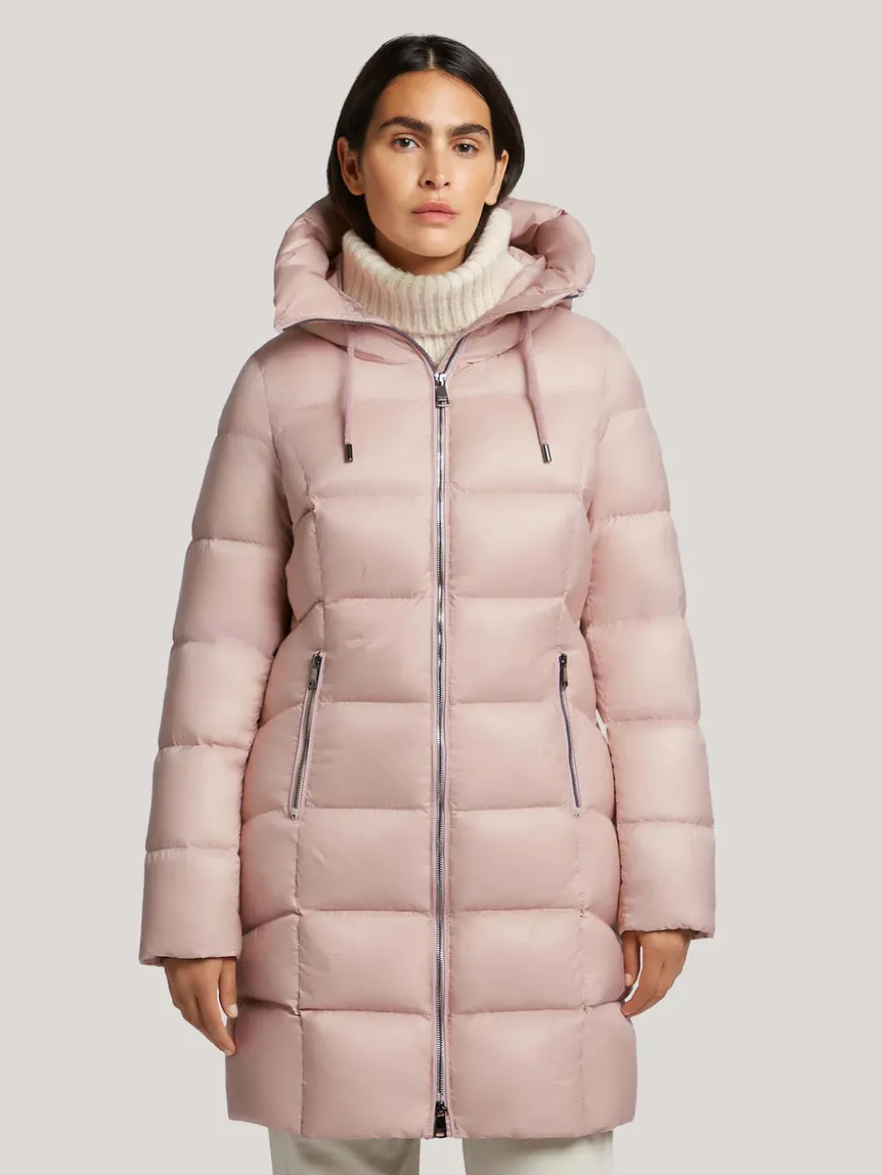 NAGOYA-takissa on reilun kokoinen huppu ja mustat asusteet. Se on täytetty kevyellä RDS-untuvalla, joka pitää sinut lämpimänä lämpötilan laskiessa, mutta on silti kevyt ja tarjoaa äärimmäistä mukavuutta.