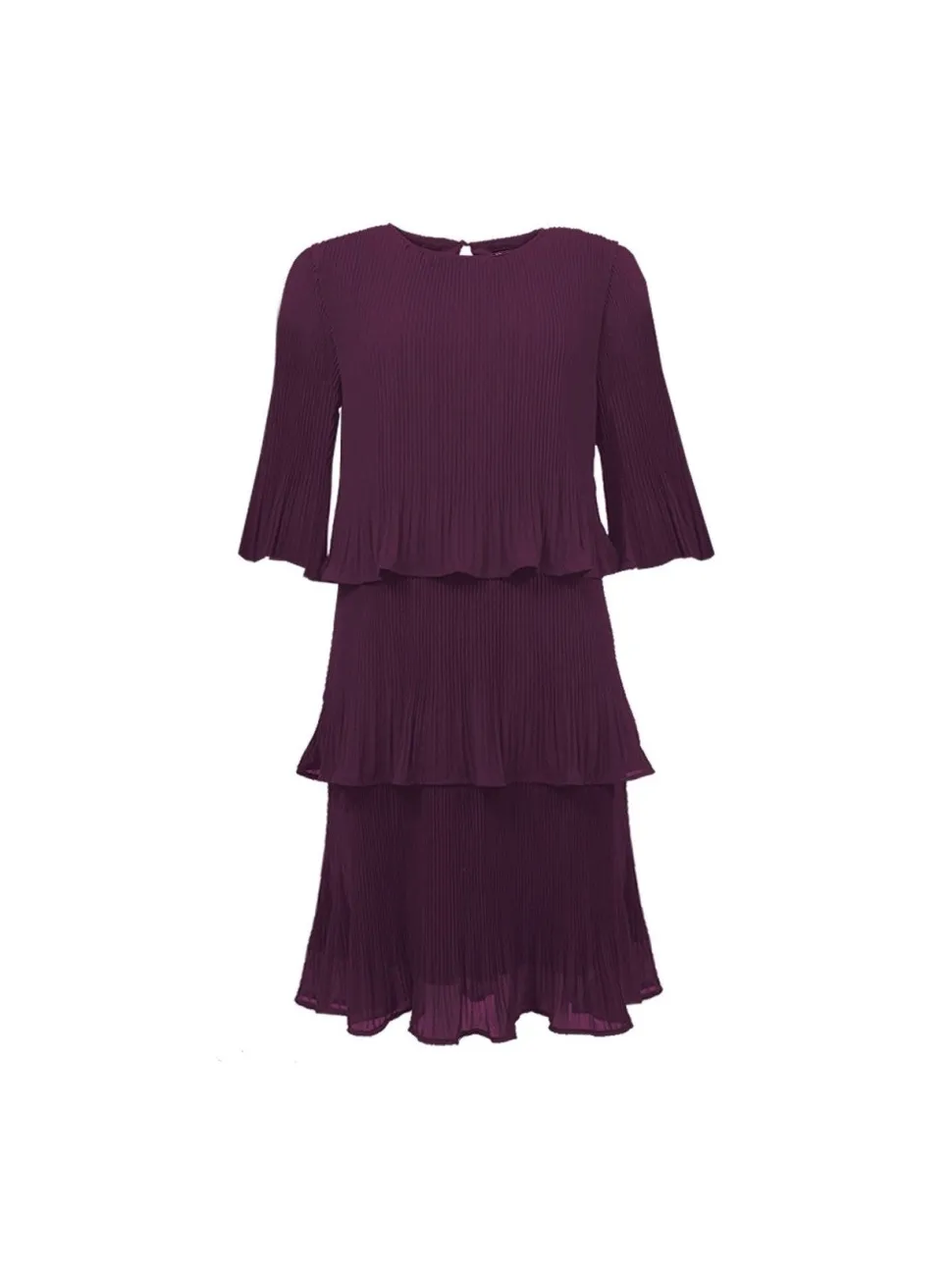 S.T.I naisten pliseerattu mekko, 3/4 hihat ja takana halkio nappikiinnityksellä.