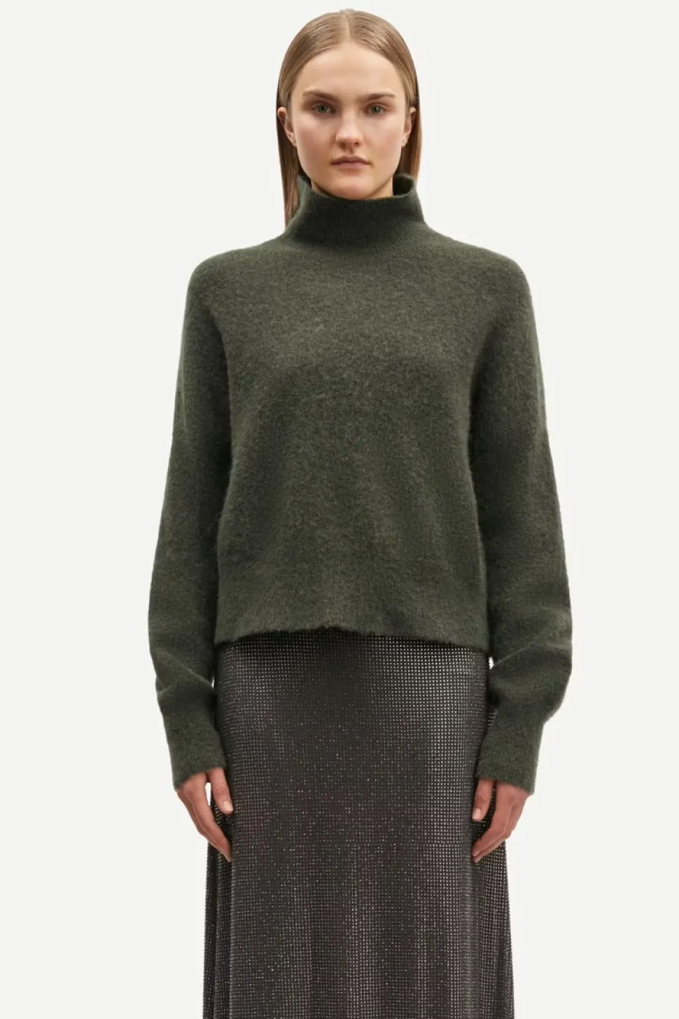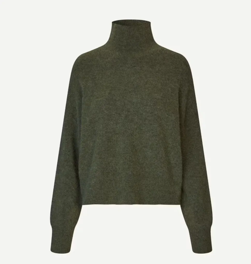 Naisten ihanan pehmeä ja hieman pörröinen neulepusero, jossa puolikorkea ns.kilpikonnakaulus . Helmassa ja hihansuussa resorineulos. Mallia on helppo yhdistellä hameiden ja housujen kanssa ja sen voi pukea vaikka mekon päälle.