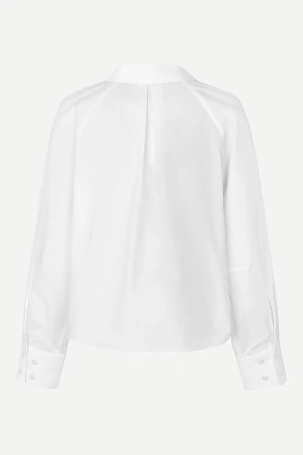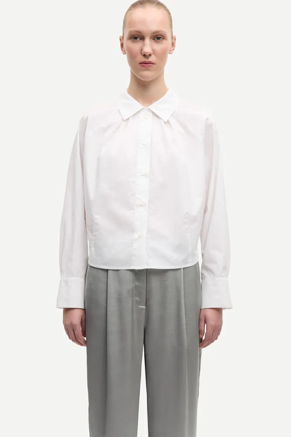 Pitkähihainen paita, jossa on väljä istuvuus ja kaartuvat hihat. Napitus edessä ja napitettavat hihansuut. Pyöristetty helma. Drapeerattu yksityiskohta kauluksen alapuolella. Kaulussuussauma. Päämateriaali on 100 % luomupuuvillaa. Tämä tuote on GOTS-sertifioitu. Jokainen toimitusketjun vaihe on täyttänyt tiukat sosiaaliset, ympäristölliset ja kemialliset vaatimukset.