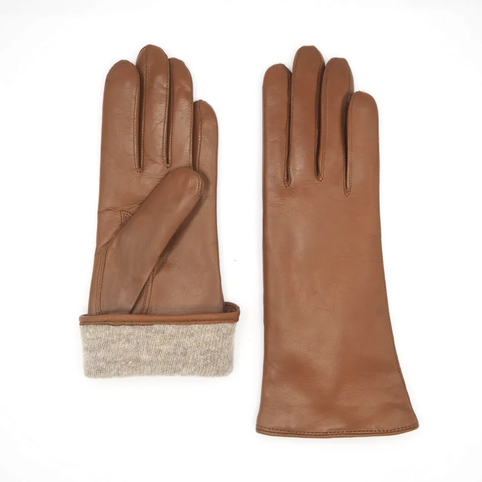 Klassinen naisten konjakin ruskea nahkakäsine. Käsityönä valmistettu ajaton käsine tarkkaan valituista luonnonmateriaaleista. Ajaton malli ja minimalistinen muotoilu. Huolella valitut materiaalit ja artesaanikäsityö tekevät näistä käsineistä ulkopukeutumisen vakion.
