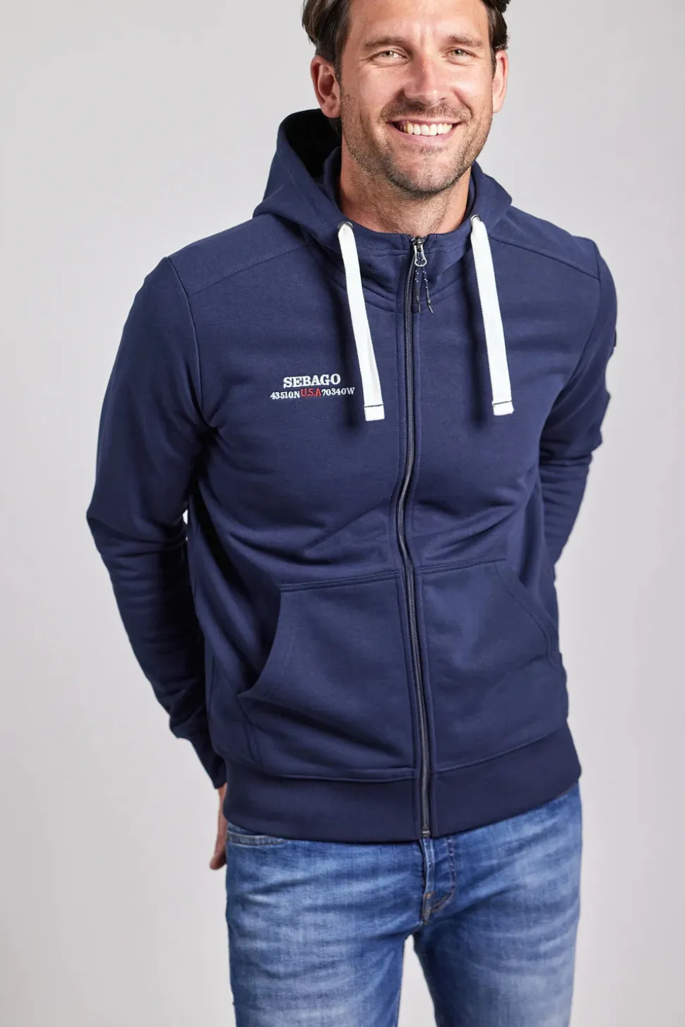 Klassinen vetoketjullinen huppari säädettävillä nyöreillä.