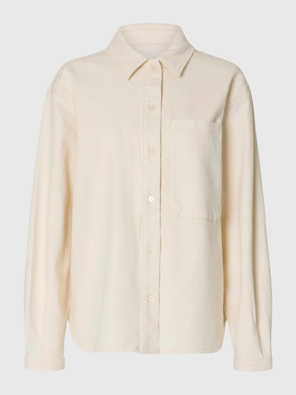 Rento ja ajaton Selected Femmen farkkupaita, joka tuo klassista farkkutyyliä vaatekaappiisi jokapäiväiseen käyttöön. Paita on suunniteltu rennolla istuvuudella, joten se tuntuu mukavalta päällä ja muuntautuu helposti eri asuihin. Napit edessä ja kaulus tekevät tästä farkkupaidasta helpon yhdistää niin farkkuihin kuin hameeseenkin – tyyli on kuitenkin aina huoliteltu ja moderni.