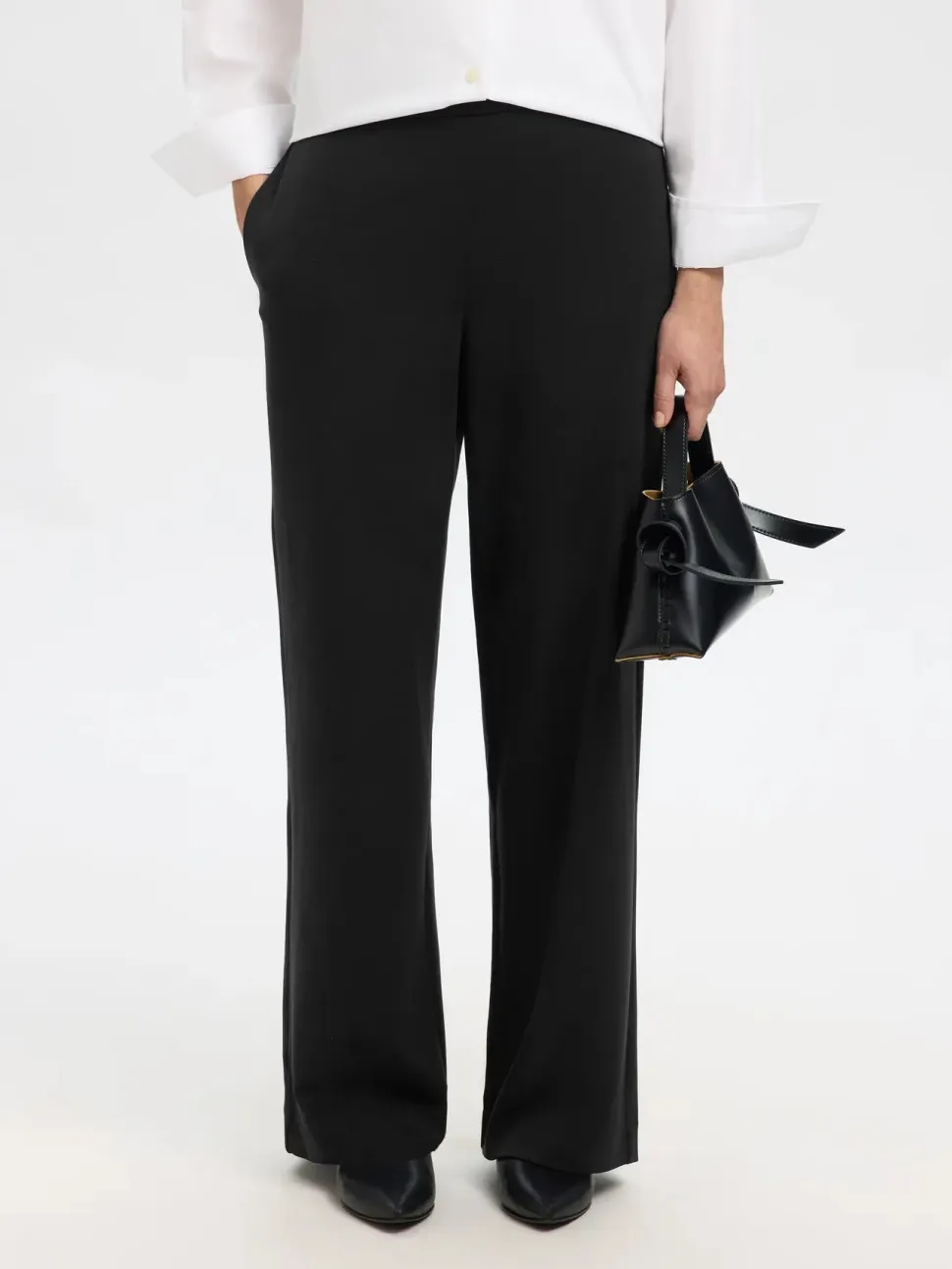 Älä tingi mukavuudesta tyylin vuoksi – kokeile näitä leveälahkeisia housuja. Niissä on mukava joustava vyötärönauha ja tilava, väljä istuvuus, mutta myös räätälöityjä yksityiskohtia, kuten keskelle prässätut laskokset ja huolitellut taskut.