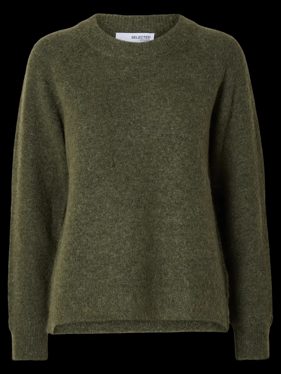 Selected Femme Naisten Neulepaita, Lulu LS Knit O-Neck Kalamata Melange