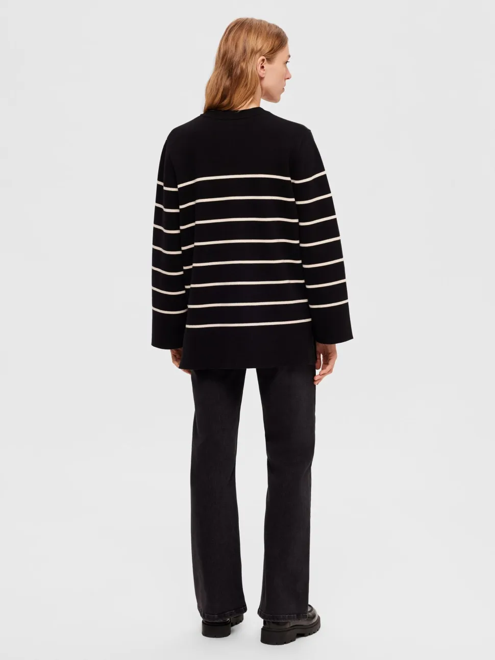 Luomupuuvillasta valmistetussa neuletakissa on näyttävän kokoiset napit ja lasketut olkapäät.