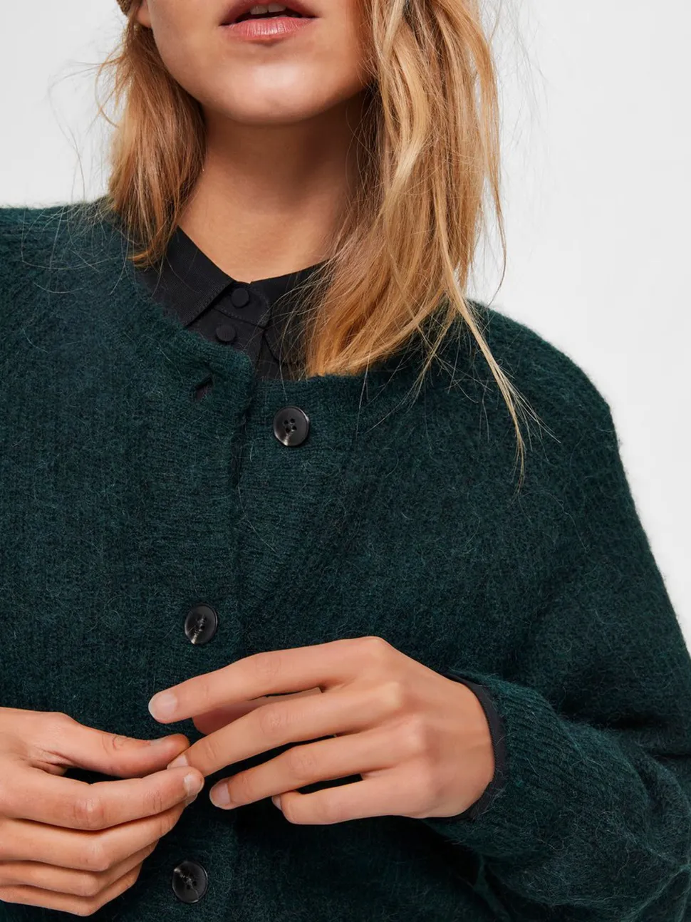 Selected Femmen ihastuttava neuletakki, joka on valmistettu pehmeästä ja laadukkaasta villasekoitteesta. Neulottu pinta, .pyöreä pääntie ja näyttävät napit edessä.