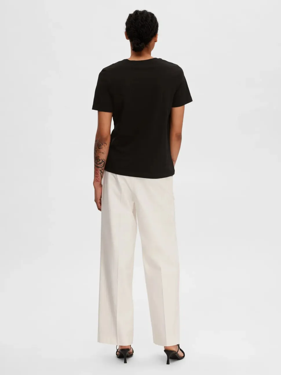 Naisten lyhythihainen T-paita, jossa V- pääntie. 100% luomupuuvillaa. Regular fit.