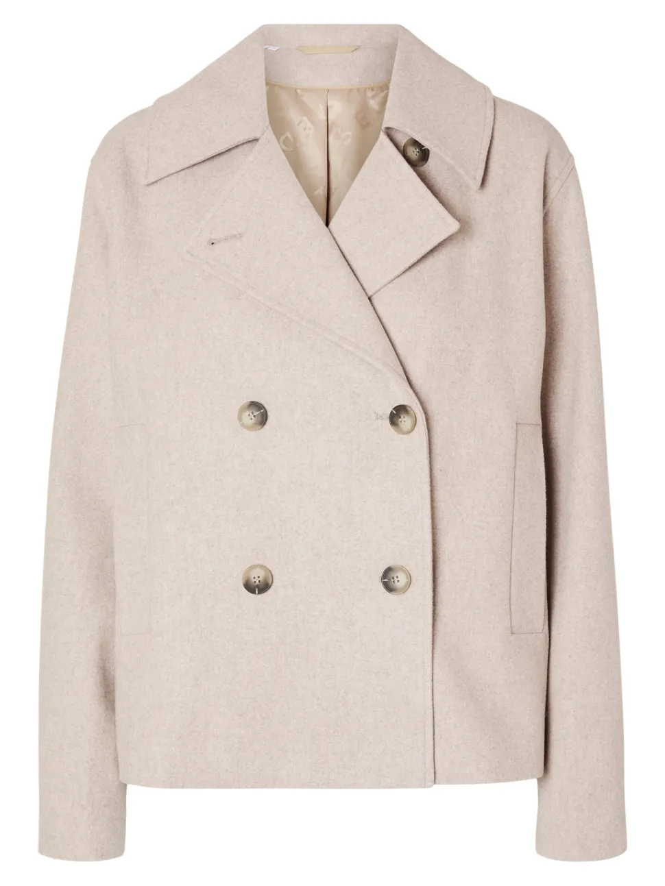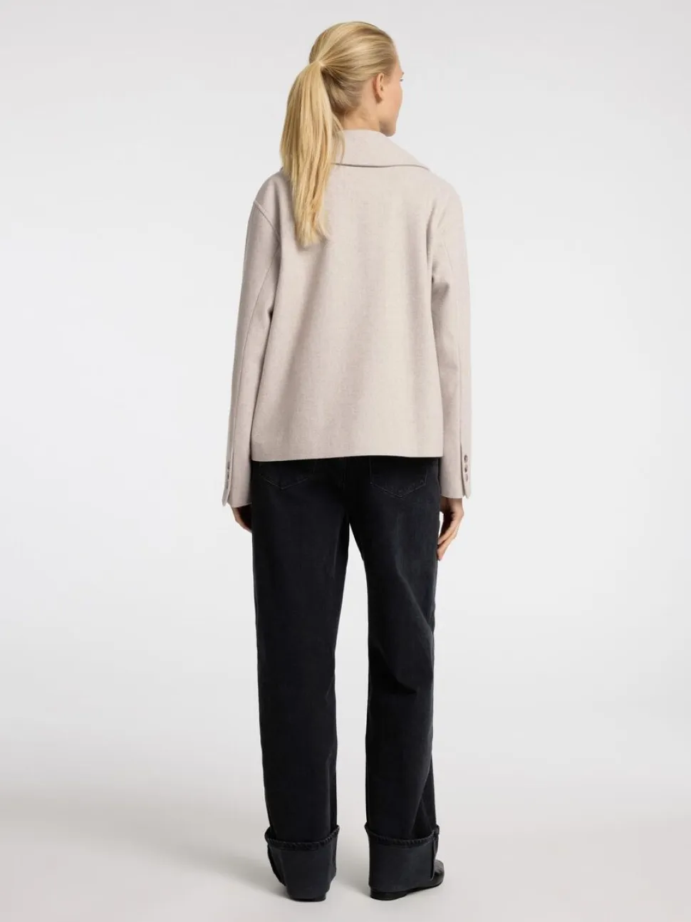 Muodikas lyhyt villakangastakki kaksirivisellä napituksella