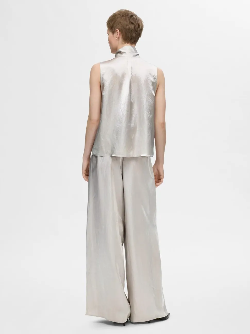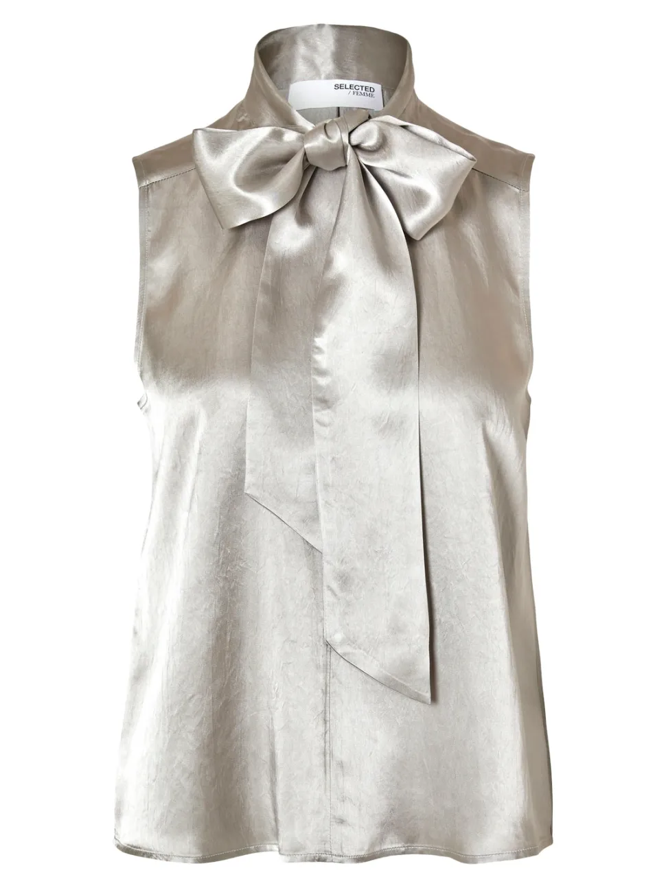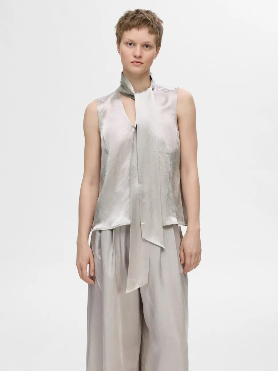 Selected Femmen hihaton satiinitoppi solmittavalla kauluksella.