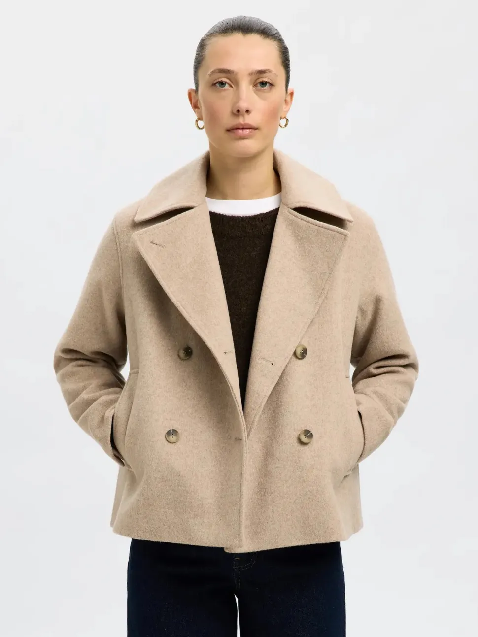 Hyödynnä kausikohtaista monipuolisuutta tässä kauniissa villasekoitteisessa takissa. Käytä sitä auki näyttääksesi kauluksen käänteen tai napita se ylös vaihtaaksesi tyyliäsi. Yhdistä se leveälahkeisten housujen ja nahkaisten nilkkureiden kanssa.