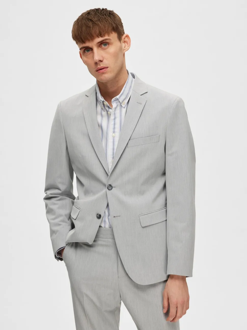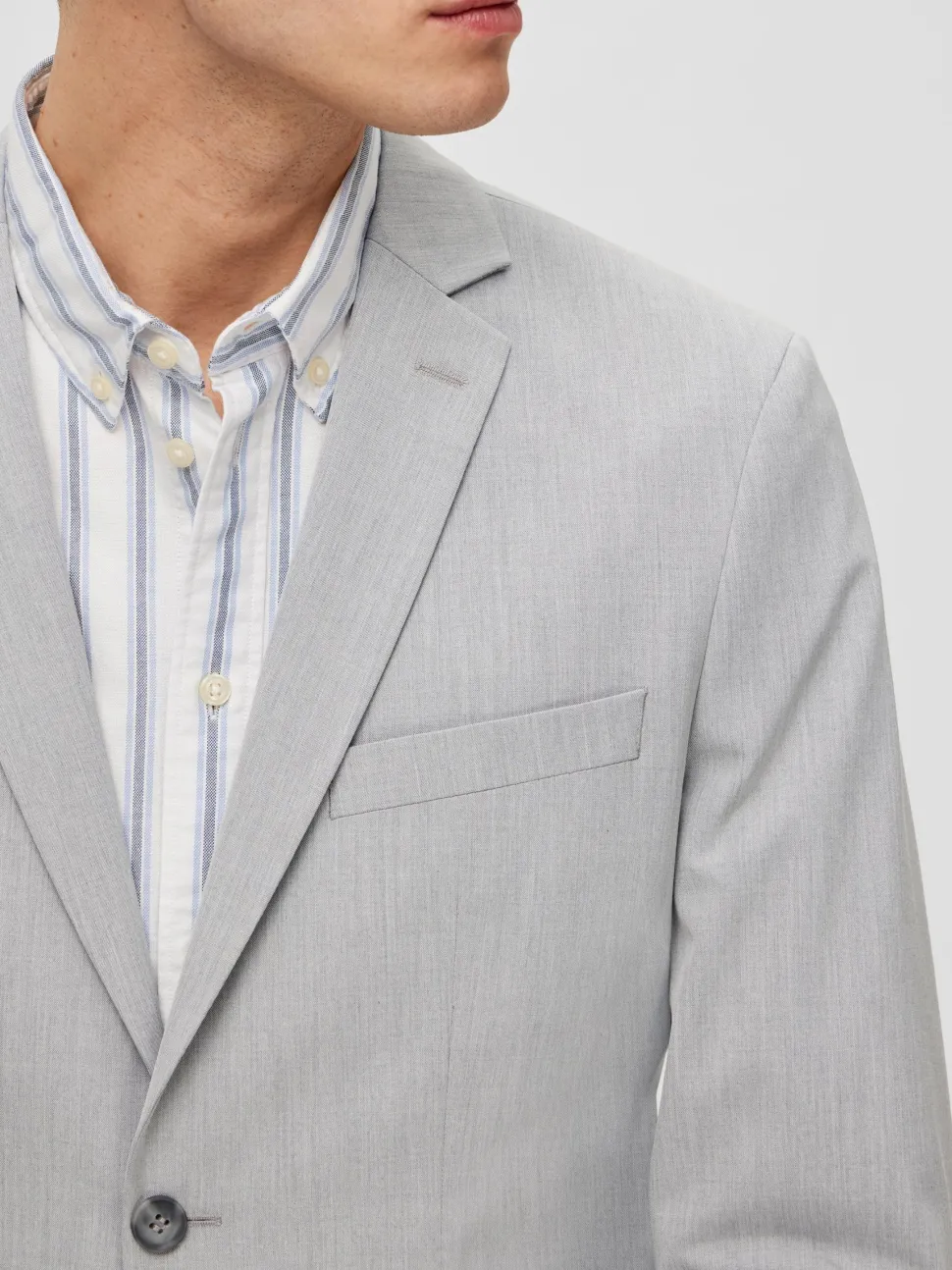 Selected Homme miesten yhdistelmäbleiseri. – Yksirivinen – Lovitetut käänteet – 2 nappia – Pitkät hihat napitetuilla hihansuilla – Rinta- ja etutaskut – Vuorattu – Slim fit