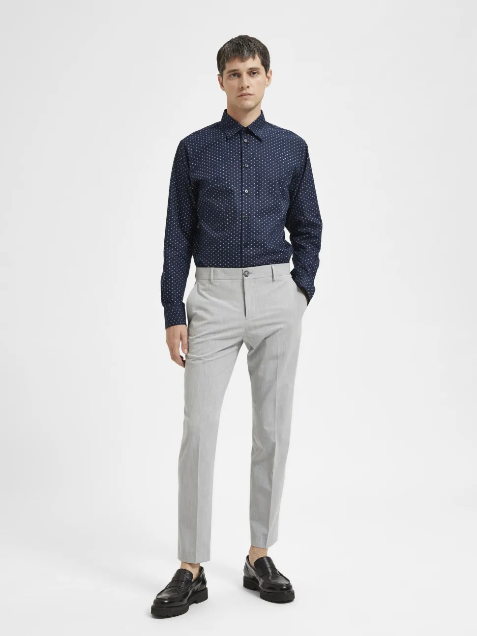 Selected Homme miesten yhdistelmähousut. – Edessä vetoketju ja nappikiinnitys – Vyölenkit – Viistot sivutaskut – Takataskut napeilla – Slim fit – Nilkkapituus