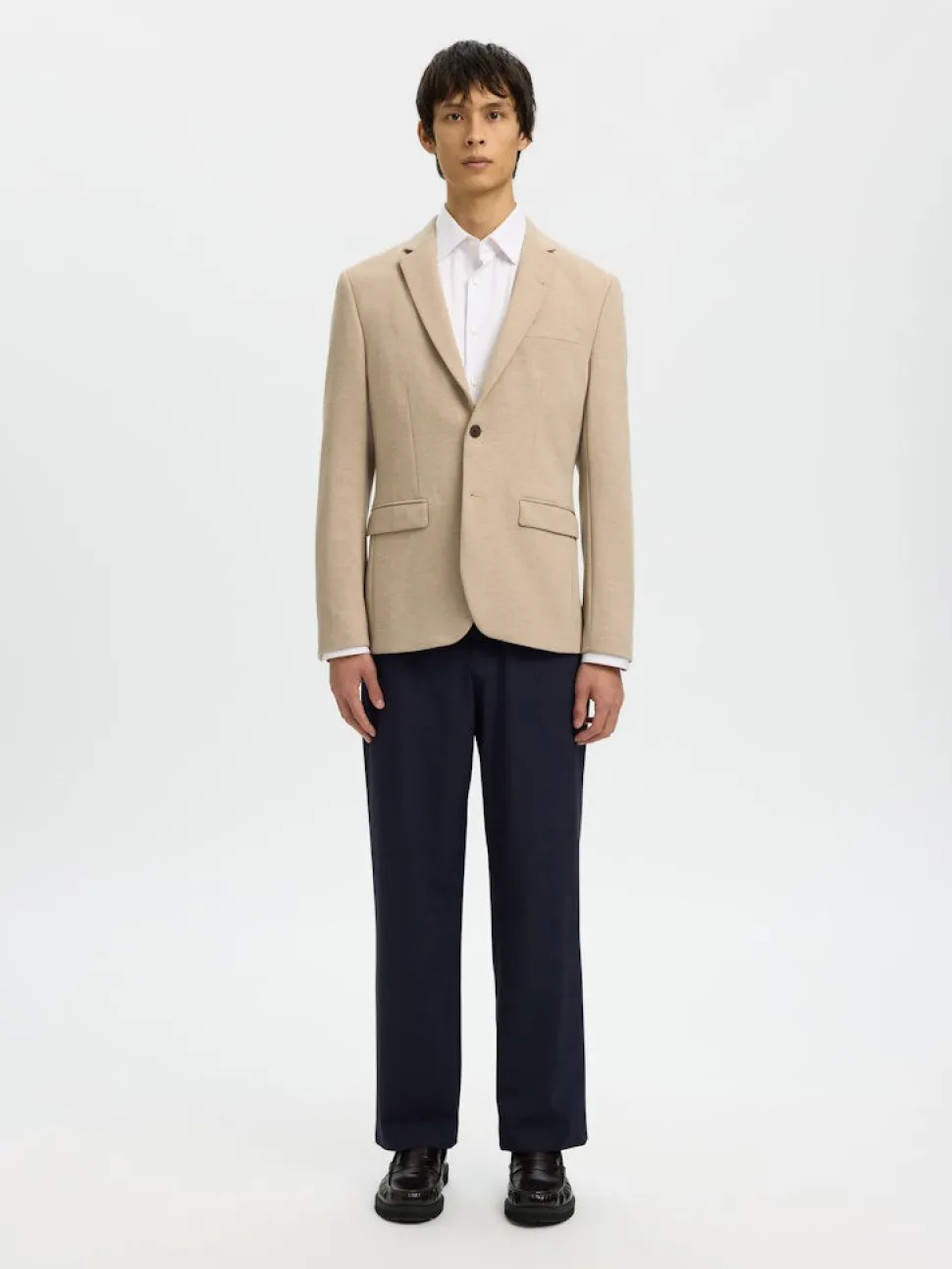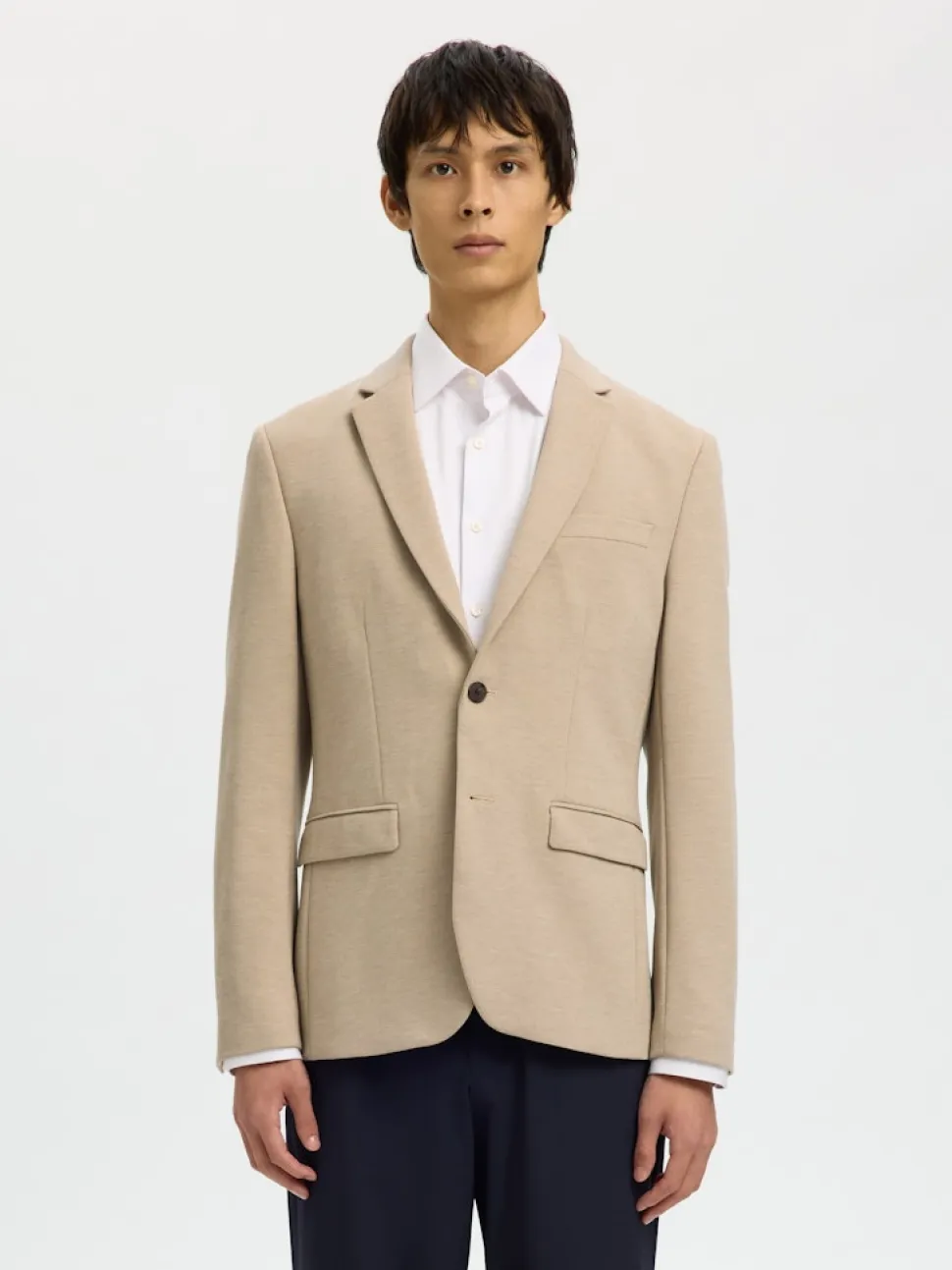 Selectedin jerseykankainen slim fit bleiseri. Pehmeää ja joustavaa materiaalia. Yhdistä helposti ruudullisen paidan ja chinojen kanssa.