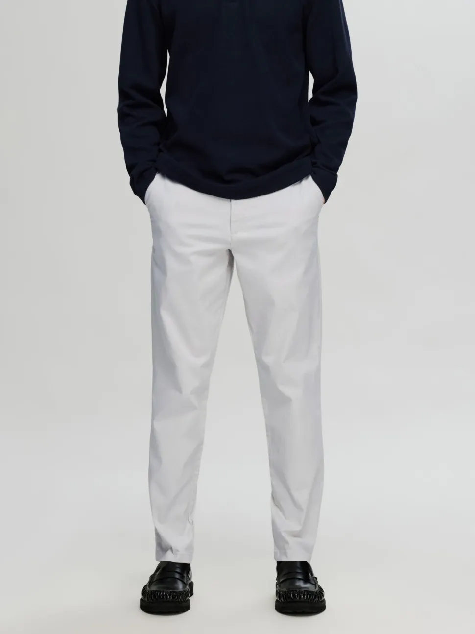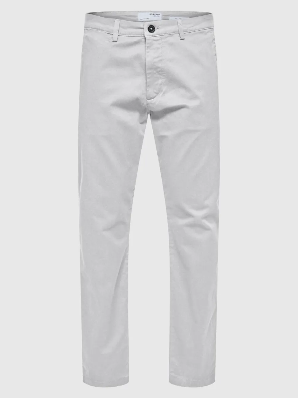 Selectedin Slim Fit malliset chinot. Vaatekaapin peruspilareihin kuuluvissa chinoissa on sivutaskut, vetoketju/nappikiinnitys, nilkkapituiset lahkeet ja vyönlenkit. Nämä housut on valmistettu LYCRA® T400® -kuituinnovaatiosta, joka tarjoaa pitkäkestoisen istuvuuden ja muodon säilymisen