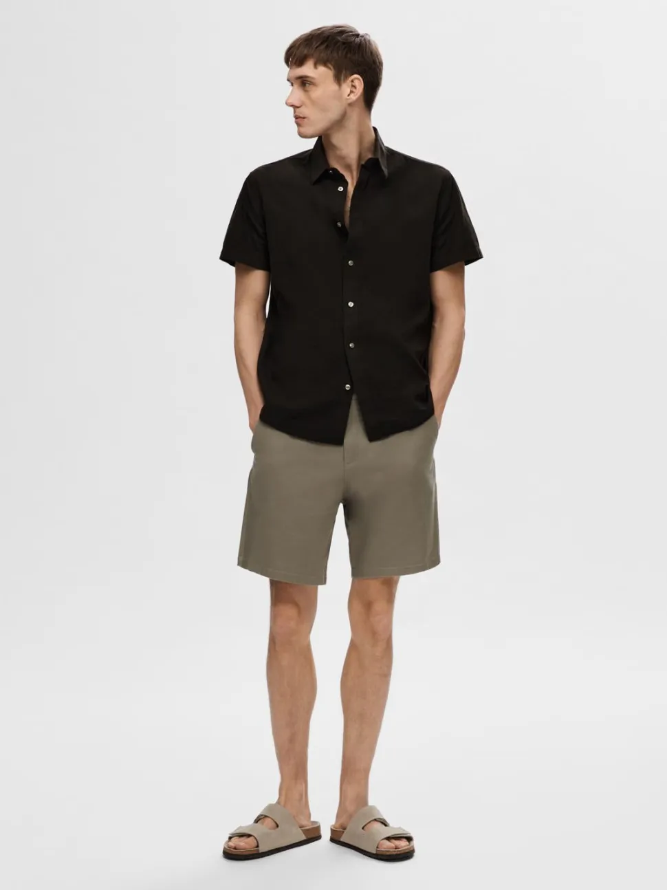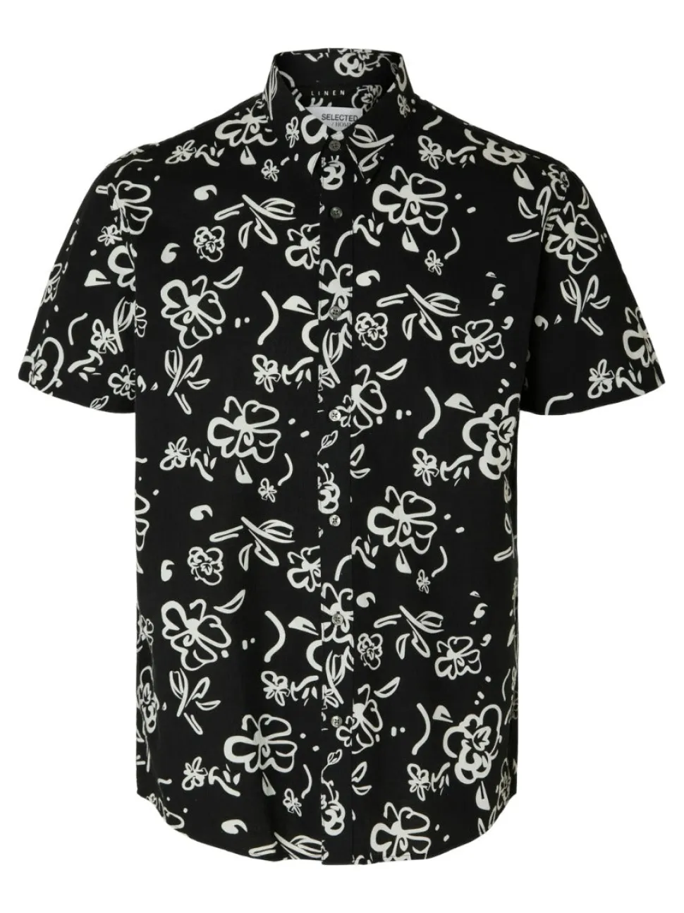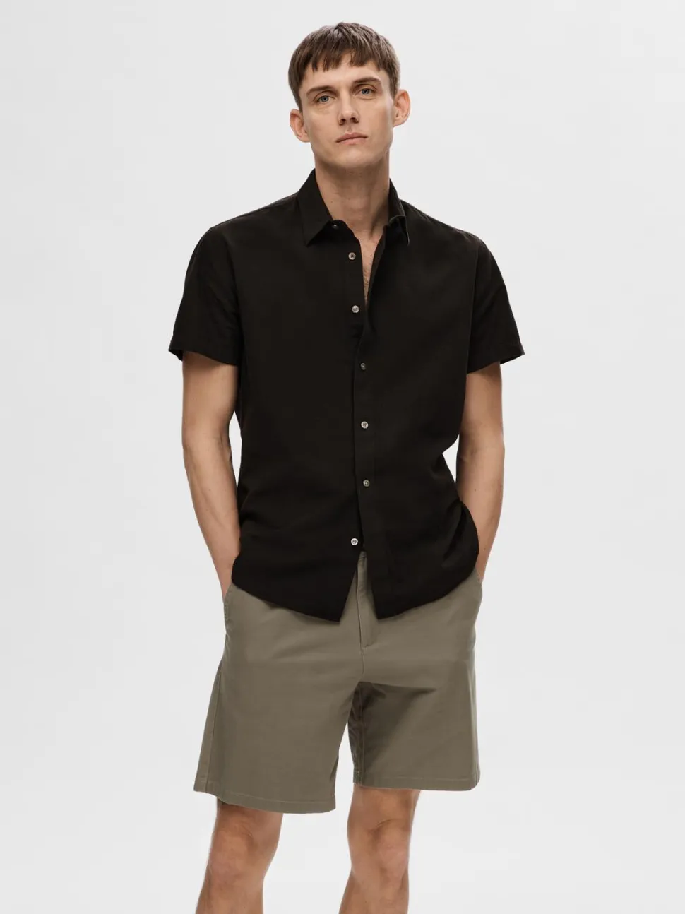 Selected miesten kauluspaita, normaali mitoitus. Materiaali pehmeää ja vilpoista pellavan ja puuvillan sekoitetta.
