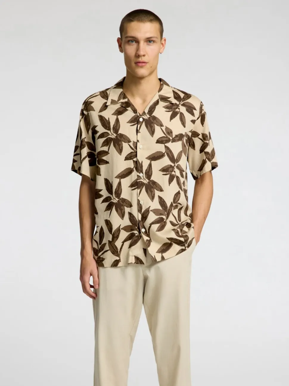 – Levitetty kaulus – Edessä napitus – Lyhyet hihat – Painettu muotoilu – Valmistettu pellavasta – Normaali istuvuus