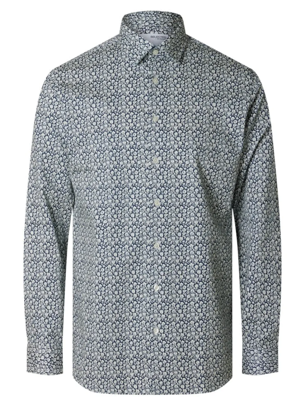 Selectedin kauluspaita nappikiinnityksellä, pitkillä hihoilla ja pyöristetyllä helmalla. Slim fit istuvuus.